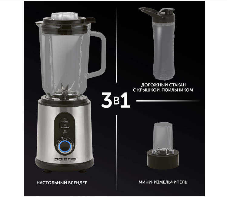 Тип - блендер стационарный; Максимальная мощность - 1800 Вт; Объем рабочей емкости - 1500 мл; Тип управления - кнопочное, поворотный механизм; Импульсный режим - есть; Защита - от неправильной сборки, от перегрева, от поражения электрическим током; Питание - от сети; Вес - 5,7 кг;