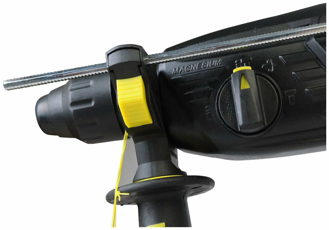 В комплекте быстрозажимной патрон, долото, дополнительная рукоятка, сверла