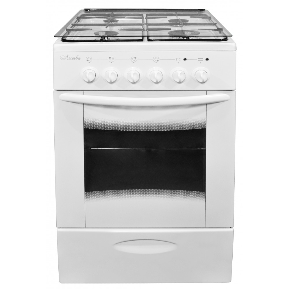Тип варочной панели - газовая; Ширина - 50 см; Общее количество конфорок - 4; Материал рабочей поверхности - эмалированная сталь; Очистка духовки - традиционная; Особенности конструкции - подсветка духовки, ящик для посуды; Электроподжиг - варочная поверхность;