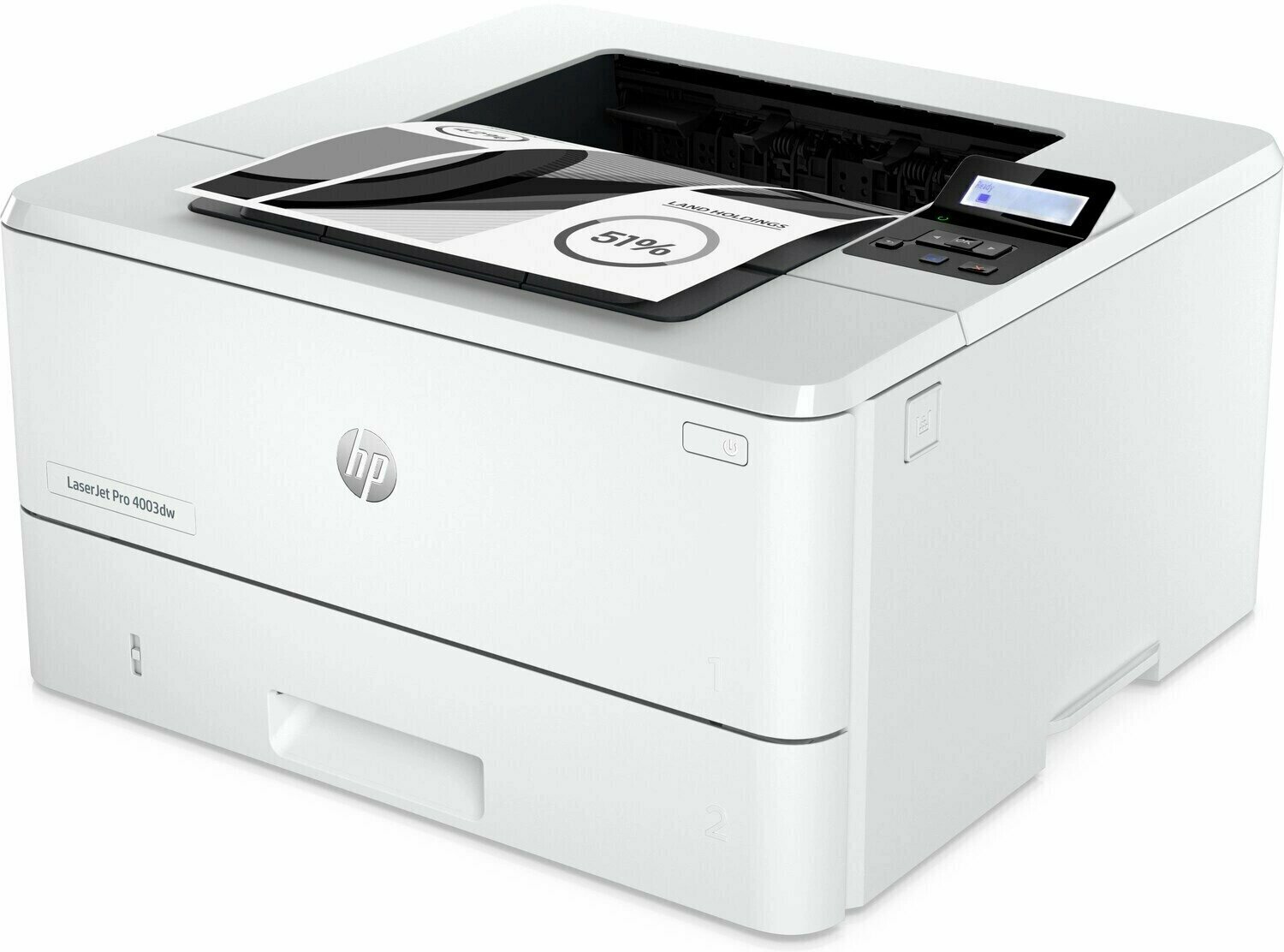 Комплектация Принтер лазерный HP LaserJet Pro 4003dw, предустановленный оригинальный тонер-картридж HP Black LaserJet, руководство по началу работы, брошюра технической поддержки, руководство по гарантии, брошюра нормативных документов, шнур питания, USB-кабель (только для точки доступа и беспроводной связи)