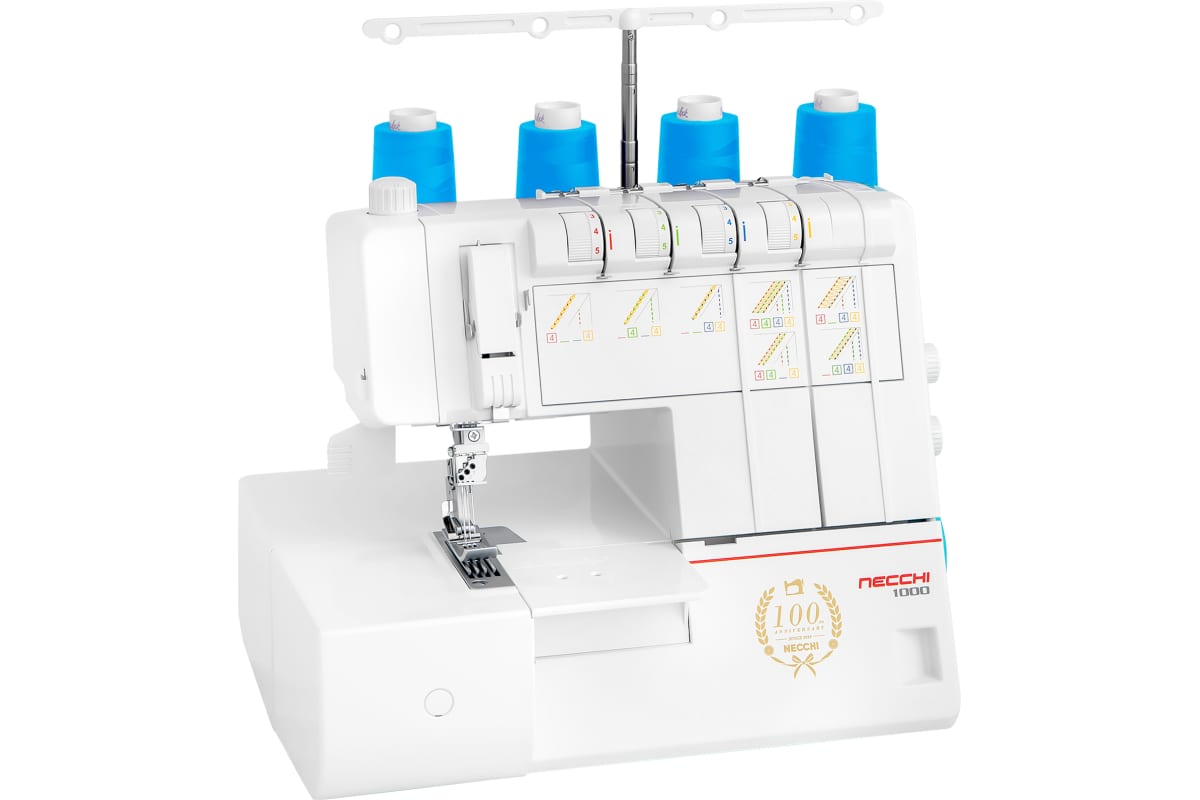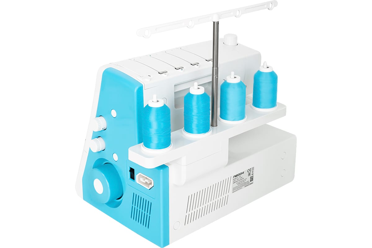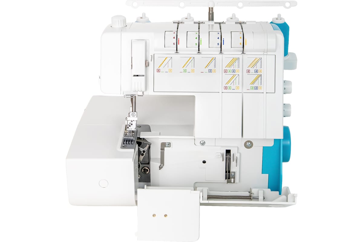 Тип управления - электромеханическое; Потребляемая мощность - 120 Вт; Max число нитей - 4; Max высота подъема лапки - 10 мм; Скорость шитья - 1300 стежков/мин; Вес - 7.5 кг; Регулировка прижима ткани - да; Нитеобрезатель - да; Подсветка рабочей зоны - да; Вид шва - цепной стежок/3-ниточный распошивальный/2-ниточный широкий и узкий;