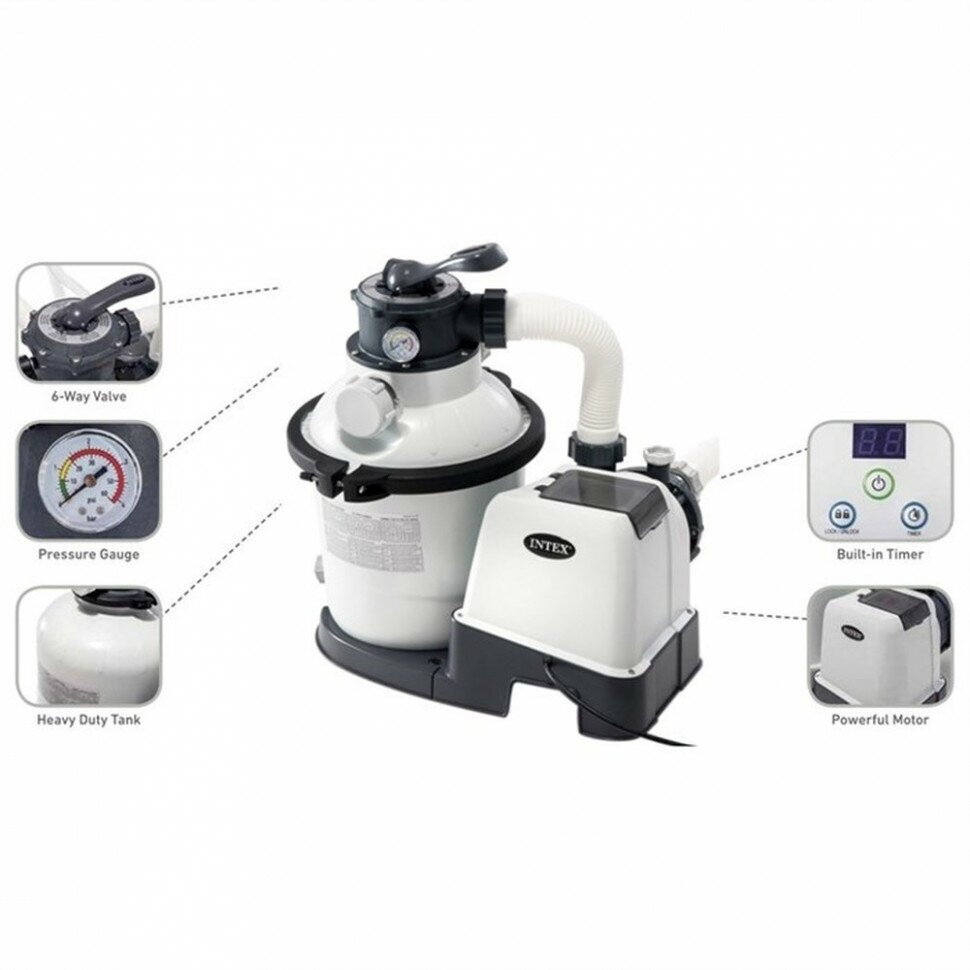 Дополнительная информация диаметр шлангов 38 мм, длина 1,5; в комплектацию не входит песок, песок приобретается дополнительно; фильтрующий насос подключается к штатным системам в бассейне Intex