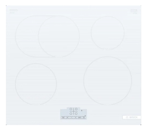 Цвет - белый; Тип панели - индукционная; Установка - независимая; Высота - 5.1 см; Ширина - 59.2 см; Глубина - 52.2 см; Габариты ниши для встраивания (Ш х Г) - 56-56 х 49-50 см; Материал поверхности - стеклокерамика; Элементы управления - сенсорные; Таймер - с функцией отключения для каждой конфорки; Овальная конфорка - 1; Количество конфорок - 4; Количество ступеней мощности - 17; Функция ReStart