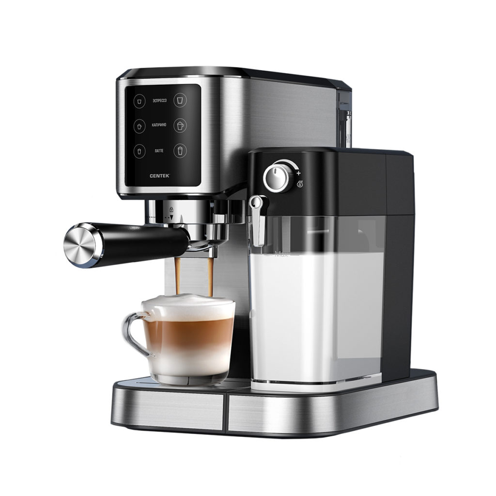 Тип - кофеварка рожковая; Тип используемого кофе - молотый; Цвет - черный, серый; Мощность, Вт - 1450; Вес товара - 5 кг; Материал корпуса - пластик, металл; Управление - сенсорное; Комплектация - Кофеварка - 1 шт. Держатель фильтра - 1 шт. Фильтр для кофе - 2 шт. Мерная ложка - 1 шт. Руководство пользователя - 1 шт. Упаковка; Особенности - автоматическая система вспенивания молока, Платформа для