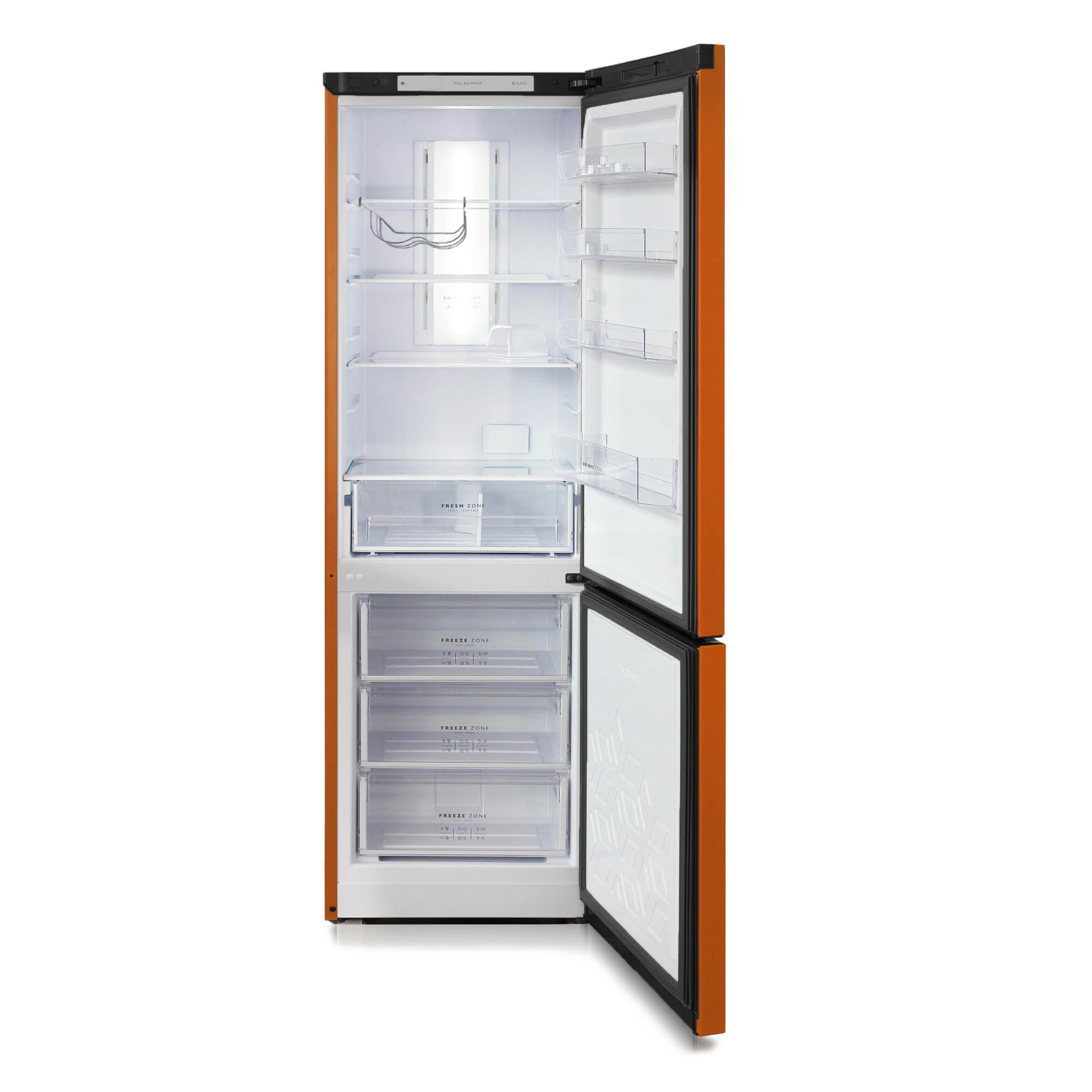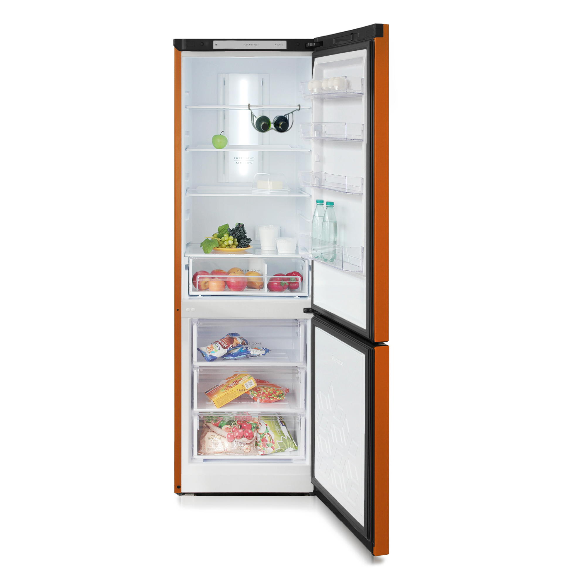 Цвет - оранжевый; Общий объем - 340 л; Объем холодильной камеры - 240 л; Объем морозильной камеры - 100 л; Класс энергоэффективности - A; Количество камер - 2; Количество дверей - 2; Расположение морозильной камеры - Нижнее; Управление - LED дисплей; Количество компрессоров - 1; Климатический класс - N, ST; Уровень шума - 43 дБ; Возможность перевешивания двери - есть; Размораживание морозильной ка