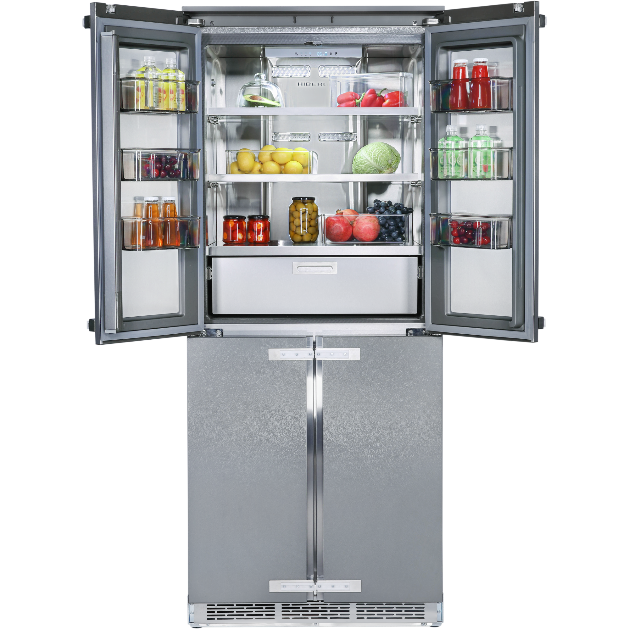 Тип - холодильник; Общий объем, л - 387; Общий объем холодильной камеры, л - 233; Общий объем морозильной камеры, л - 122; Количество дверей - 4; Количество камер - 2; Высота - 188.2 см; Ширина - 78 см; Глубина - 57.9 см; Вес - 105 кг; Цвет - серебристый; - ;