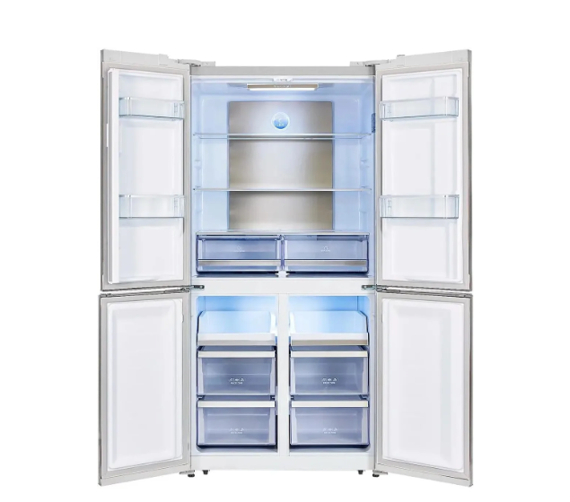 Тип - холодильник Side-by-Side; Общий объем, л - 465; Общий объем холодильной камеры, л - 321; Общий объем морозильной камеры, л - 144; Количество камер - 3; Количество дверей - 4; Ширина - 91.1 см; Глубина - 63.6 см; Высота - 183 см; Вес - 92 кг; Цвет - белый;