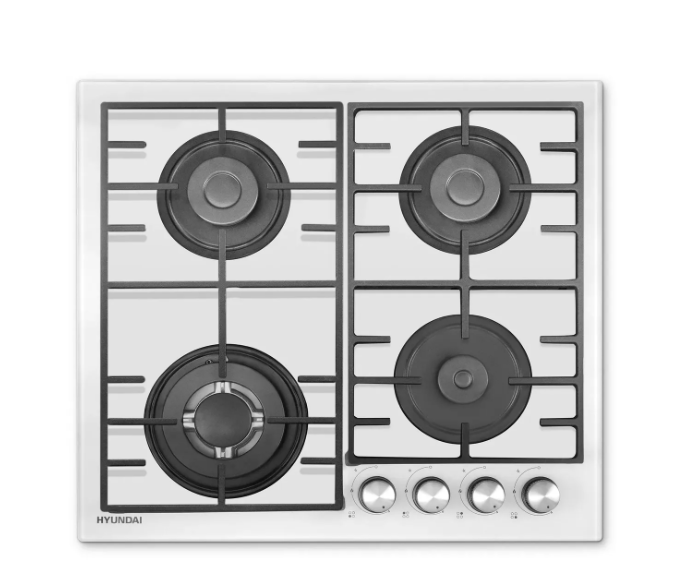 Тип панели (плиты) - газовая; Материал рабочей поверхности панели - закаленное стекло; Количество конфорок - 4; Материал решетки - чугун; Тип управления - механическое; Тип переключателей - поворотные; Ширина - 60 см; Глубина - 60 см; Вес - 9 кг; Цвет - белый; Электроподжиг - есть; - ;