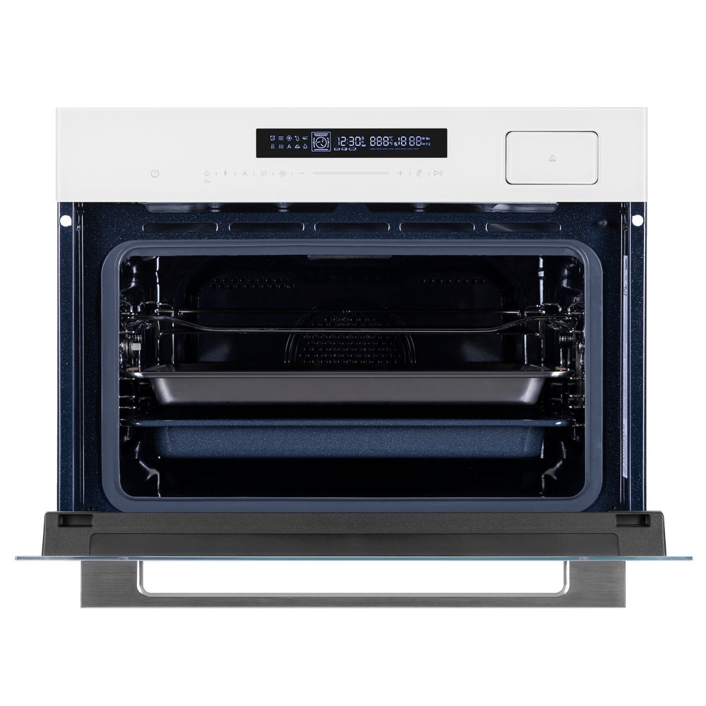Объем духовки, л - 50; Тип установки - Независимая; Тип питания - Электрический; Количество режимов работы - 13; Управление духовкой - Дисплей; Внутреннее покрытие - Эмаль; Особенности духовки, плиты - Вентилятор охлаждения; Количество стекол дверцы духовки - 2; Системы защиты - Блокировка от детей; Тип - Духовой шкаф; Цвет - Белый; Потребляемая мощность, Вт - 3000; Класс энергоэффективности - A;