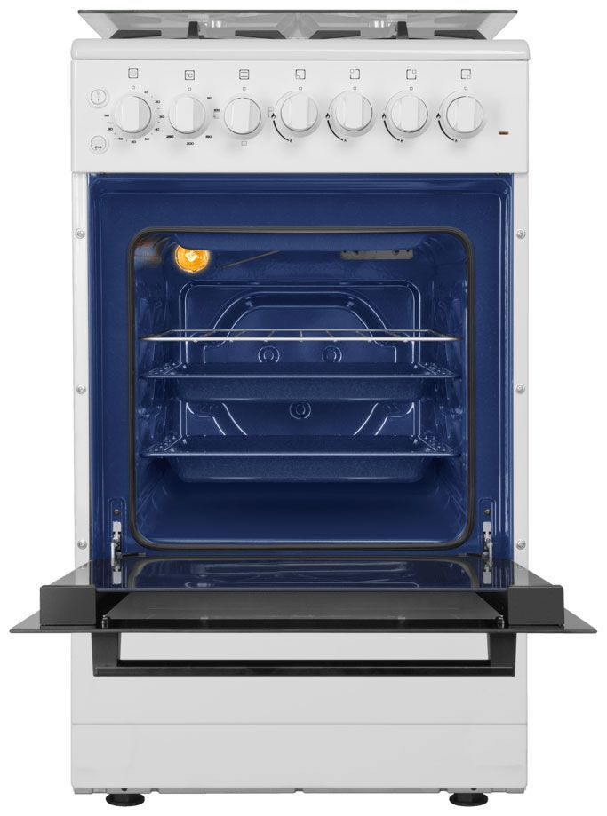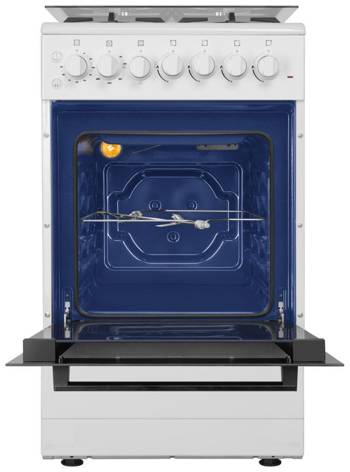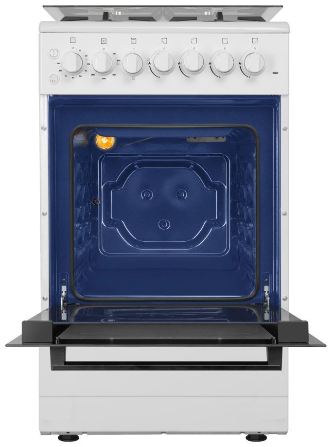 Тип плиты - комбинированная; Тип духовки - электрическая; Тип варочной поверхности - газовая; Тип управления - механическое; Тип очистки - гидролизная; Материал рабочей поверхности - эмалированная сталь; Объем камеры, л - 50; Количество конфорок - 4; Высота - 85 см; Ширина - 50 см; Глубина - 61 см; Вес - 40.8 кг; Цвет - белый; - ;