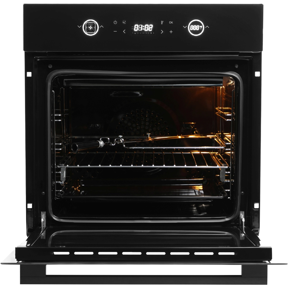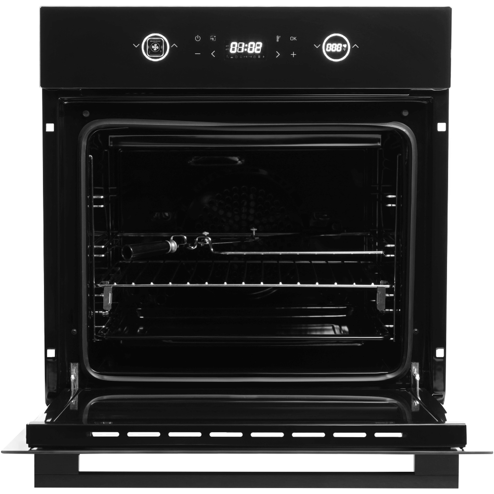 Цвет - черный; - ; - ; Тип питания - электрический; Объем духовки - 68 л; Максимальная температура - 270 °С; Количество стёкол в дверце - 3; Очистка духовки - традиционная; Телескопические направляющие - есть; Класс энергоэффективности - A; Количество режимов работы - 12; Конвекция - есть; Гриль - есть; Вертел - есть; Вентилятор охлаждения - есть; Освещение духовки - есть; Таймер - есть; Открыва