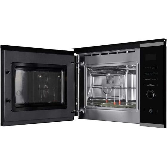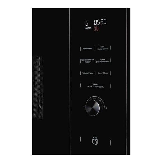 Тип - микроволновая печь; Вид - встраиваемая; Макс. мощность СВЧ, Вт - 1450; Объем, л - 25; Уровней мощности, шт - 5; Тип управления - электронное; Переключатели - поворотные, сенсорные; Высота - 38.5 см; Ширина - 59.5 см; Глубина - 39.1 см; Вес - 16 кг; Цвет - черный; Открывание дверцы микроволновой печи - кнопка; Диаметр поворотного стола, см - 31.5; - ;