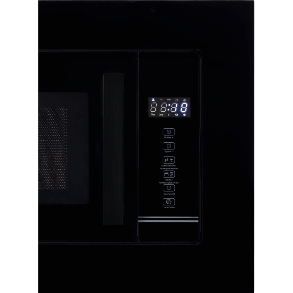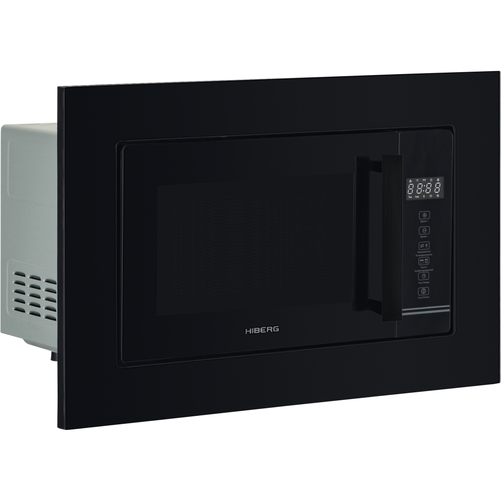 Цвет - черный; Размещение - встраиваемая; Поворотный стол - нет; Объем камеры - 20 л; Мощность микроволн - 800 Вт; Гриль - есть; Мощность гриля - 800 Вт; Открывание дверцы - кнопка; Тип управления - сенсорное; Освещение - есть; Покрытие нижней внутренней части камеры - керамическое; Материал фасадной панели - закаленное стекло; Распределение микроволн - 3D Surround ; Дисплей - есть; Размеры (ШхГхВ