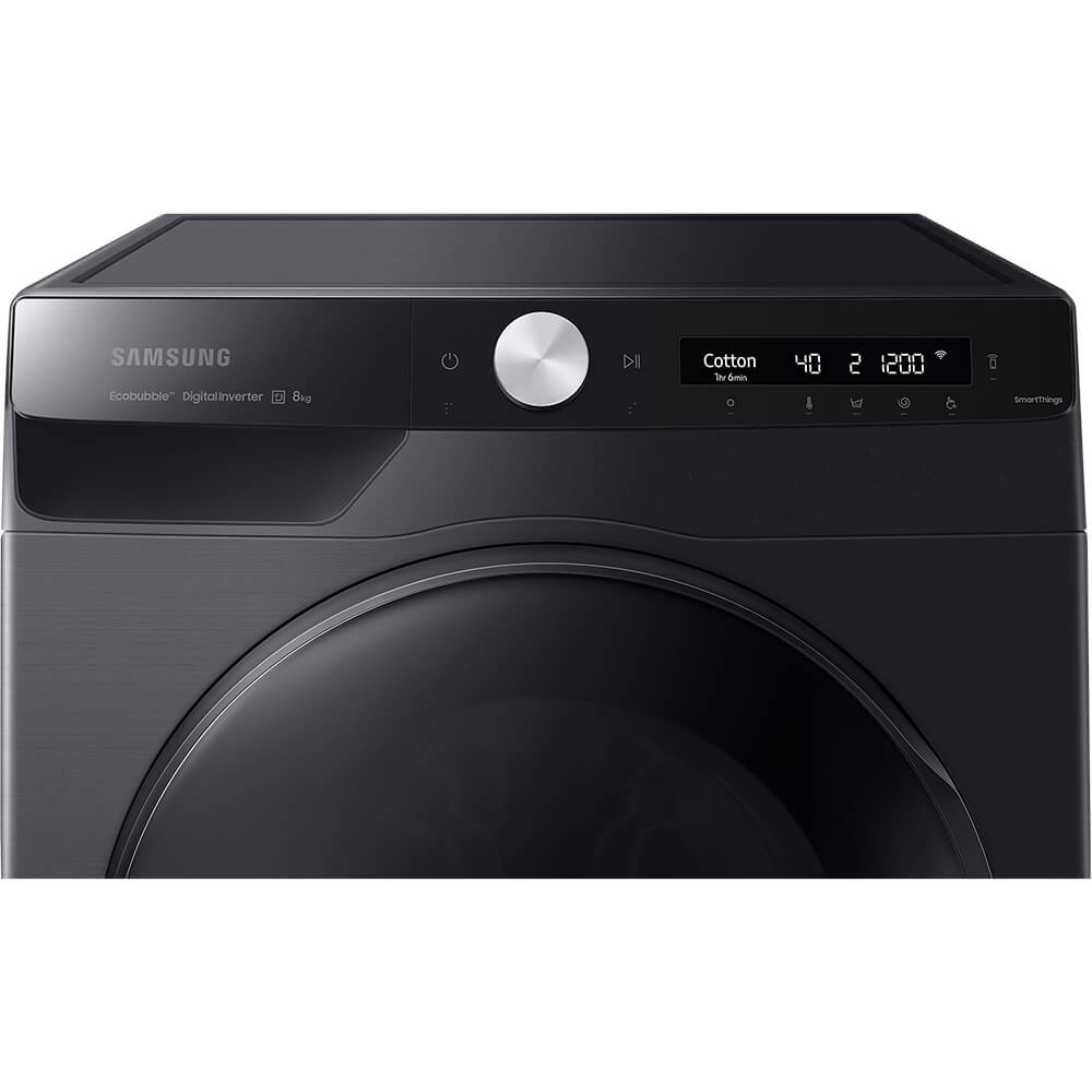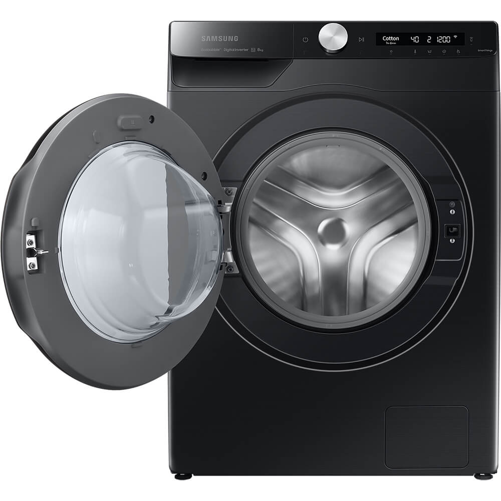Цвет - черный; Тип загрузки - фронтальная; Загрузка белья - 8 кг; Скорость отжима - 1200 об/мин; Расход воды за стирку - 48 л; Уровень шума при отжиме - 75 дБ; Уровень шума при стирке - 57 дБ; Инверторный двигатель - да; Дисплей - есть; Количество программ - 23; Защита от протечек - AquaProtect; Класс энергопотребления - A; Размеры (ШхГхВ) - 60х45х85 см; Управление с использованием ИИ - да; Блокир