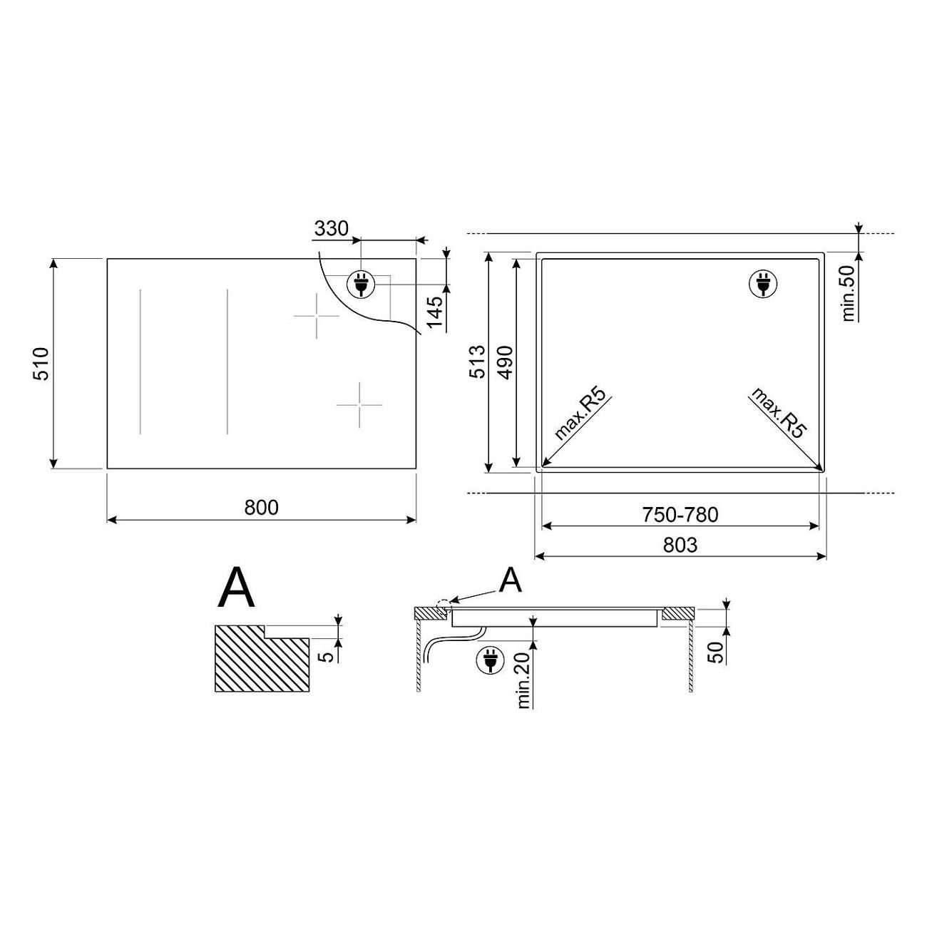 Размеры ниши для встраивания панели, мм 560x490