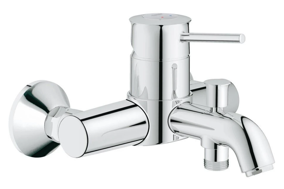 Тип - смеситель; Материал - латунь; Вид излива - фиксированный; Управление - рычажное; Механизм - керамический картридж; Назначение - для ванны; Монтаж - на стену; Количество монтажных отверстий - 2; Тип подводки - жесткая; Стандарт подводки - 1/2; Форма излива - традиционная; Поверхность - глянцевая; Форма - округлая; Стиль - современный; Цвет - хром; Высота - 124 мм; Ширина - 220 мм; Длина - 191