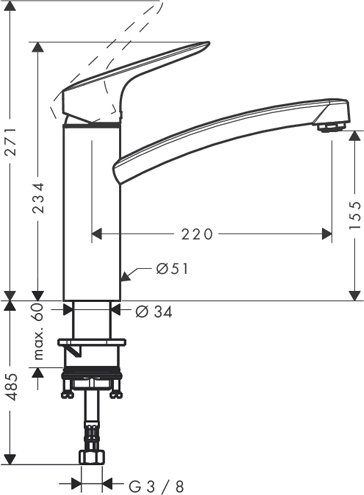 Цвет - серебристый; Форма - округлая; Форма излива - традиционная; Материал - латунь; Поверхность - глянцевая; Высота излива, мм - 155; Ширина, мм - 51; Высота, мм - 234; Длина излива, мм - 220; Вес, кг - 2; Ограничение температуры - есть; Вид излива - поворотный; Расход воды, л/мин - 12; Назначение - для кухонной мойки; Установка - на мойку; Комплектация - Однорычажный кухонный смеситель Соединит