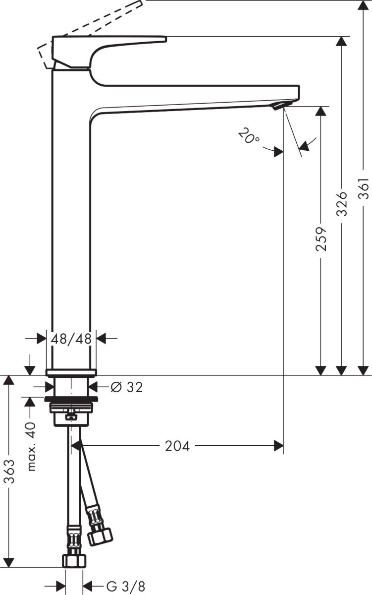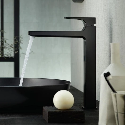 Цвет - черный; Форма - округлая; Поверхность - матовая; Высота излива, мм - 259; Ширина, мм - 48; Высота, мм - 326; Глубина, мм - 274; Длина излива, мм - 204; Вес, кг - 3.7; Материал - латунь; Донный клапан - есть; Расход воды, л/мин - 5; Управление - рычажное; Назначение - для раковины; Установка - на раковину/на столешницу; Комплектация - Однорычажный смеситель для раковины Сливной клапан;