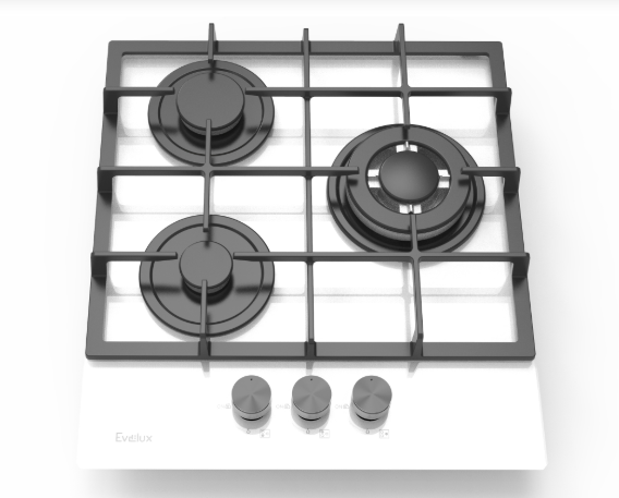 Тип панели (плиты) - газовая; Материал рабочей поверхности панели - закаленное стекло; Количество конфорок - 3; Материал переключателей - металл; Специальные конфорки - WOK-конфорка; Материал решеток - чугун; Газ-контроль - да; Электроподжиг - да; Вилка питания - да; Шнур питания - да; Комплект для подключения баллонного газа - да; Ширина - 45.3 см; Глубина - 51 см; Вес - 10 кг; Цвет - белый; - ;