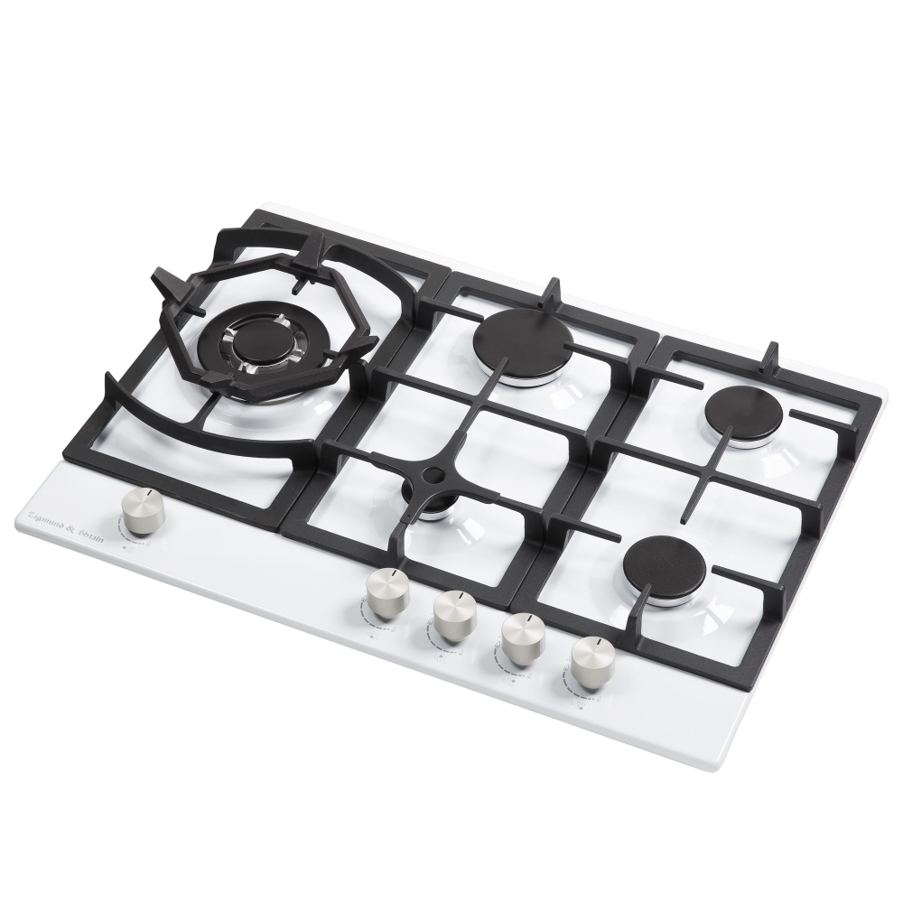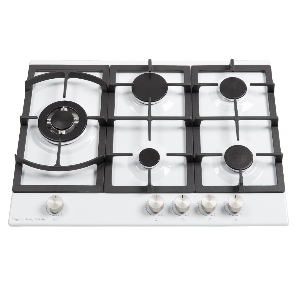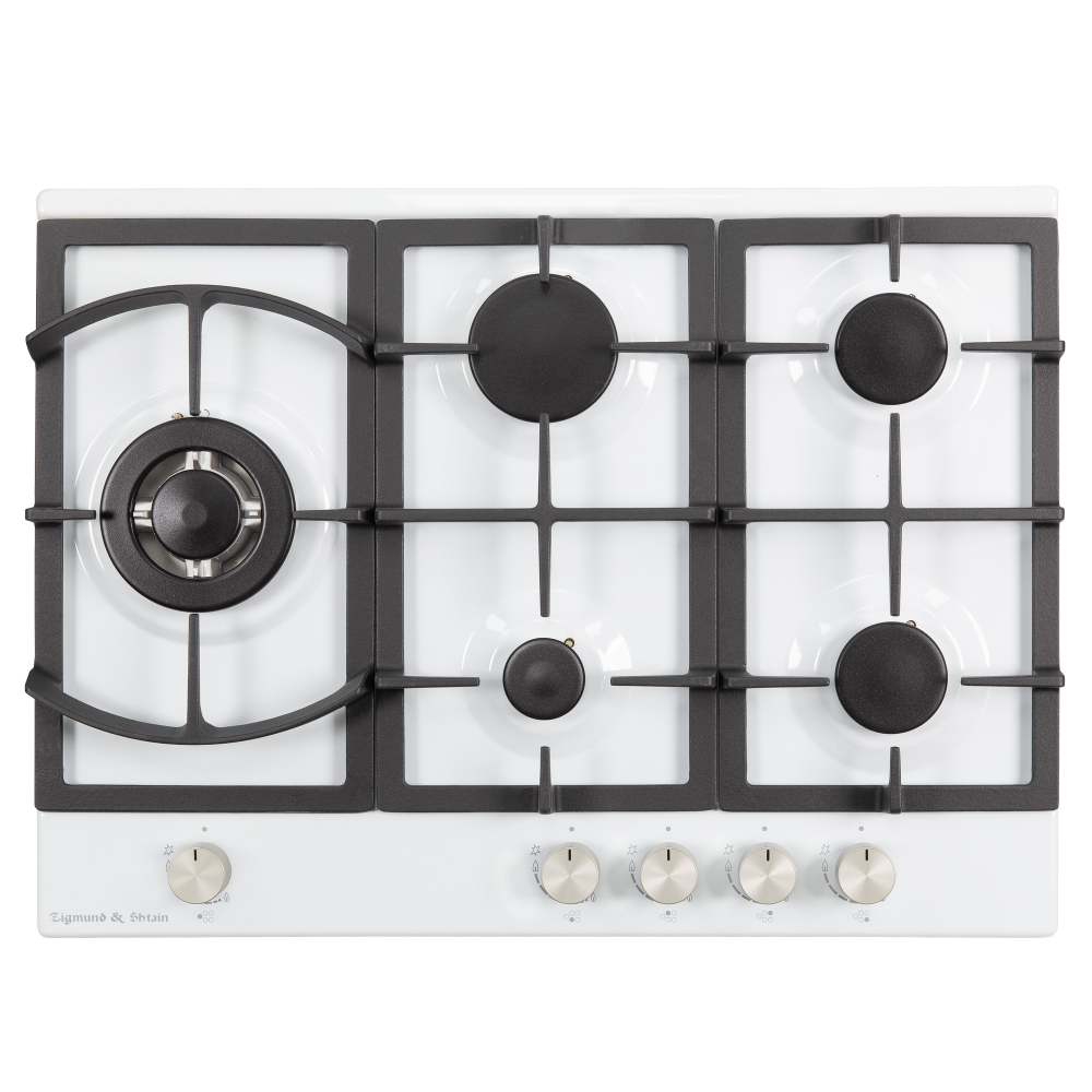 Цвет - белый; Тип панели - газовая; Количество конфорок - 5; Материал рабочей поверхности - эмалированная сталь; Материал решеток - чугун; Электроподжиг - есть; Тип электроподжига - автоматический ; Газ-контроль - есть; Управление - механическое; Подходит для магистрального и баллонного газа - да; WOK-горелка - есть; Размеры (ШхГхВ) - 69х51х4,9 см; Мощность горелок - 3.800; 2.500; 1.750; 1.750; 10