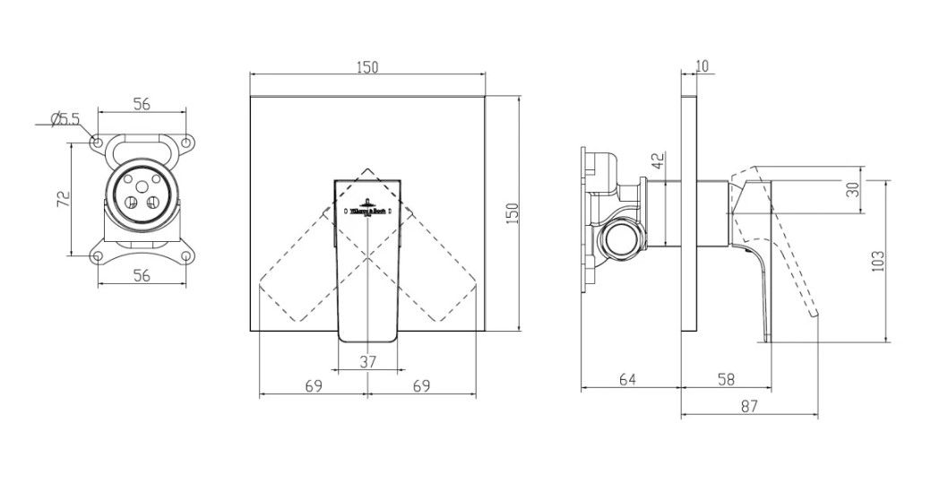 Материал - Латунь; - ; Код продавца - TVS125002000K5; - ; Вес с упаковкой, г - 1500; Ширина, см - 16; Глубина, см - 6; Высота, см - 16; - ; Тип - Смеситель; - ; Управление - Рычажное; Механизм - Керамический картридж; Назначение - Для душа; Монтаж - На стену (встраиваемый); Тип подводки - Жесткая; Стандарт подводки - 1/2; Поверхность - Матовая;