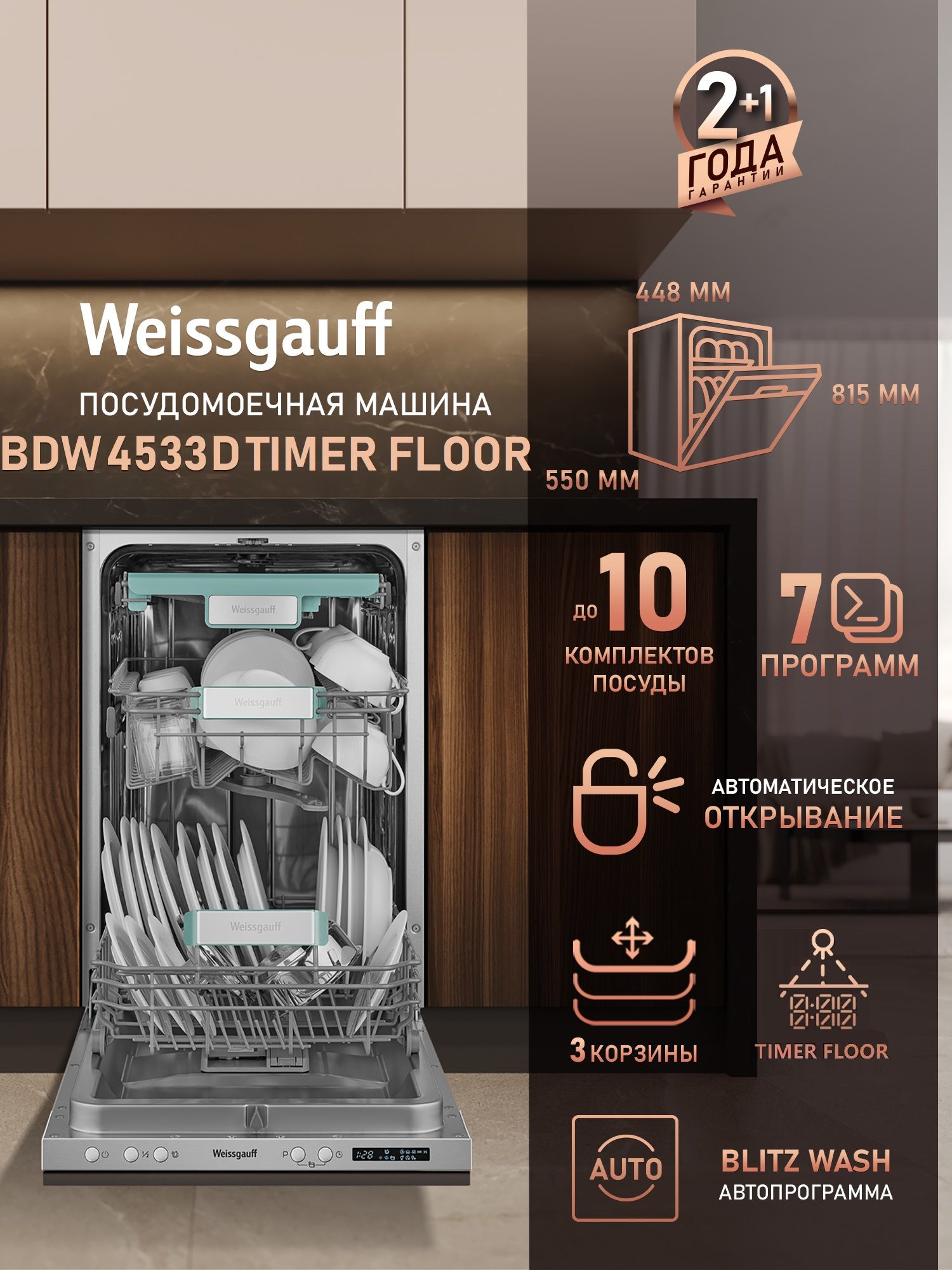 Особенности посудомоечной машины Автоматическое открывание двери,Дисплей,Поддон для столовых приборов,Регулировка высоты корзин