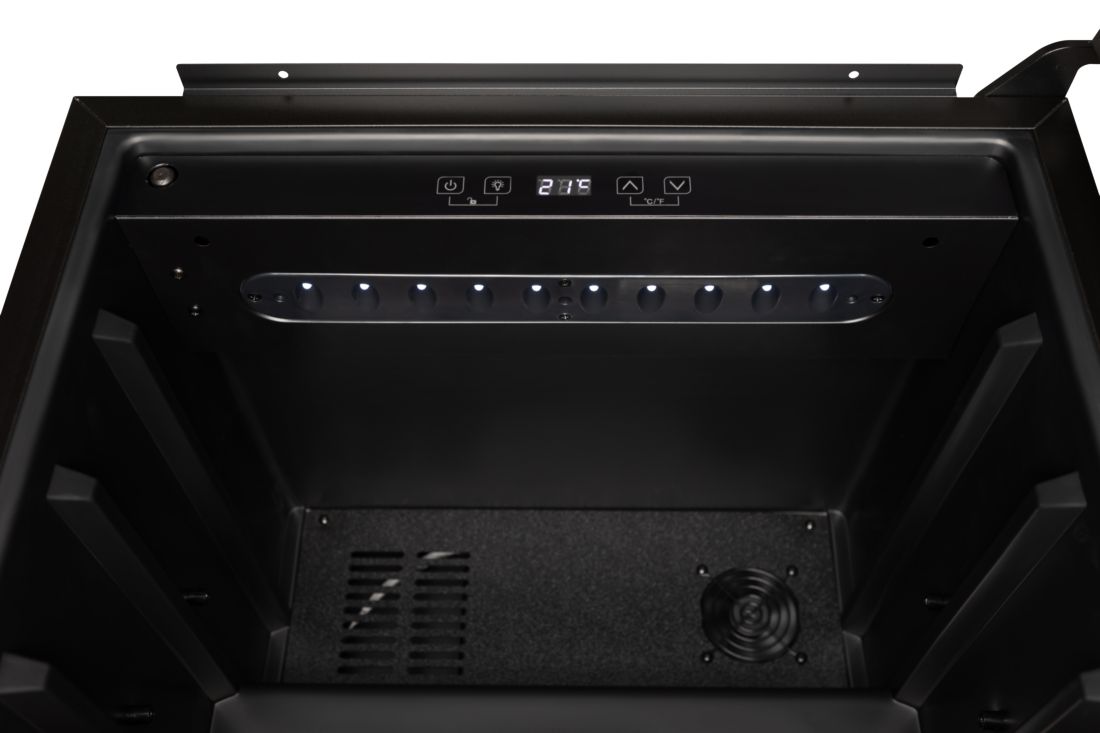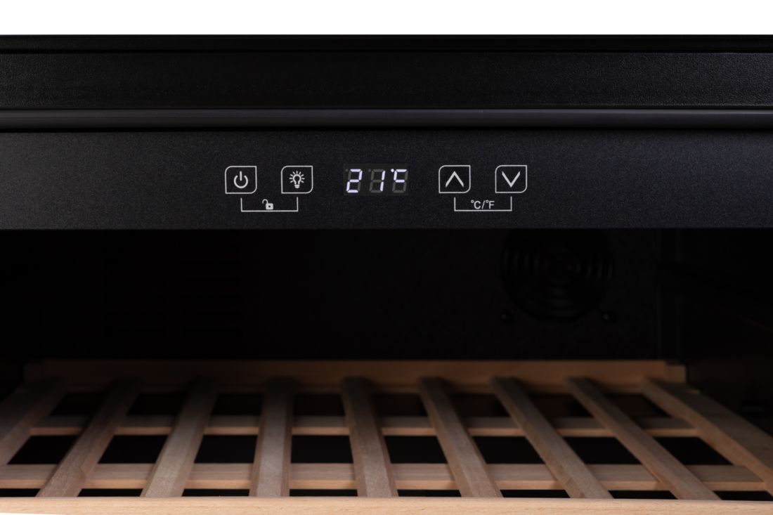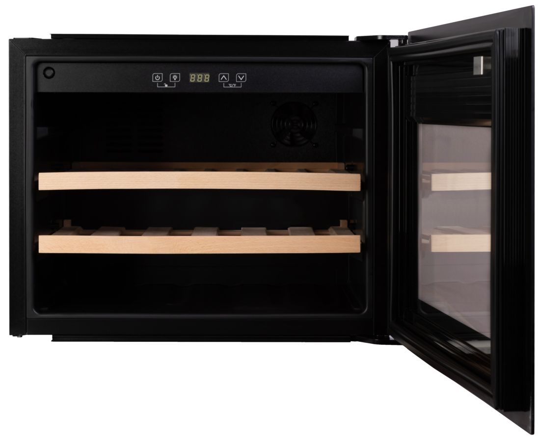 Общий объем, л - 62; Количество бутылок, шт - 28; Размеры, мм (ШхГхВ) - 590*563*455; Класс энергопотребления - A; Количество камер - 1; Климатический класс - SN +10°C / +32°C; Открывание дверей - Вправо; Тип - Винный шкаф; Цвет - Черный; Количество температурных зон - 2; Тип охлаждения - Компрессорный; Хладагент - R600A; Особенности холодильника - Дисплей,Светодиодная подсветка; Управление - Сенсо