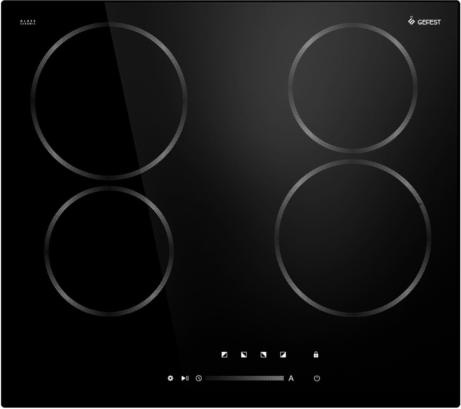 Тип панели (плиты) - Электрическая; Количество конфорок - 4; Материал рабочей поверхности панели - Стеклокерамика; Конструкция панели - Независимая; Индикация - Выбранная мощность,Остаточное тепло; Тип управления - Сенсорное; Тип - Варочная панель; Цвет - Черный; Мощность варочной панели, Вт - 6000; Ширина, см - 59; Глубина, см - 52; Размеры ниши для встраивания панели, мм - 563 х 490; Ширина встр