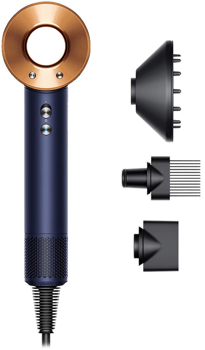 Макс. мощность, Вт - 1600; Количество температурных режимов - 4; Количество насадок - 3; Насадки для приборов по уходу за волосами - Насадка-расческа,Диффузор; Тип - Фен для волос; Цвет - Темно-синий,медь; Количество скоростей - 3; Дополнительные режимы - Ионизация,Холодный воздух; Система управления - Независимая; Предназначение - Бытовое; Длина шнура, м - 2.75; Размеры, мм - 78х97х245 (ШхГхВ); В