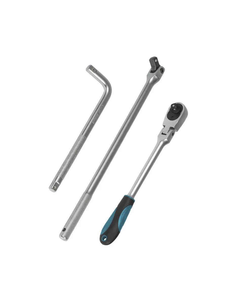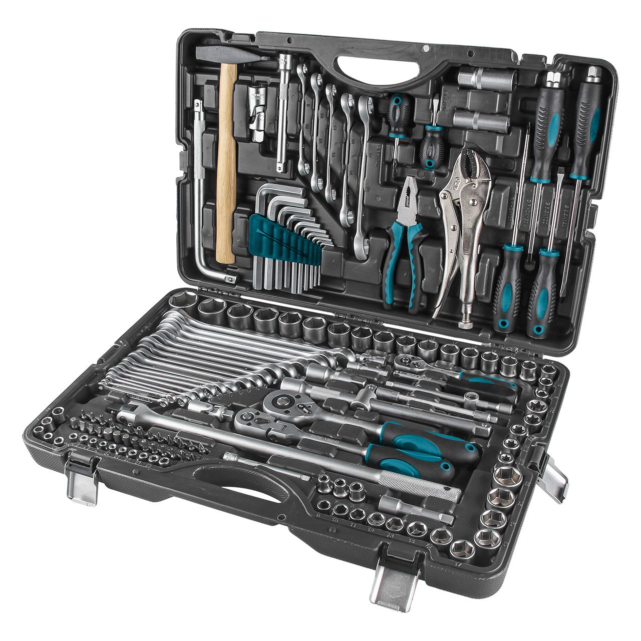 Тип - Набор инструментов для автомобиля; Инструменты в комплекте - Молоток,Отвертки,Трещотка; Количество инструментов в наборе, шт. - 143; Материал - Хромованадиевая сталь; Длина, мм - 380; Ширина, мм - 580;