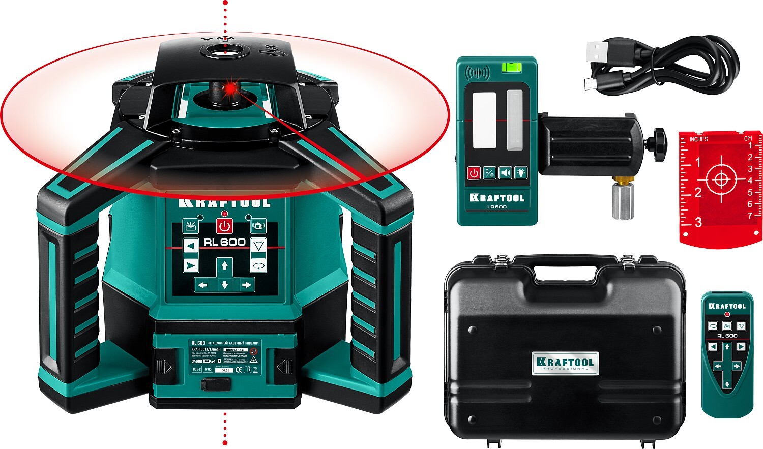 Количество лучей - 3; Дальность измерения, м - 600; Погрешность измерения - ±0.2 мм; Проецирование лучей - Ротационное; Тип питания - От батареек; Цвет луча - Красный; Крепление головки к штативу - 5/8"; Тип - Лазерный уровень/нивелир; Цвет - Зеленый,черный;