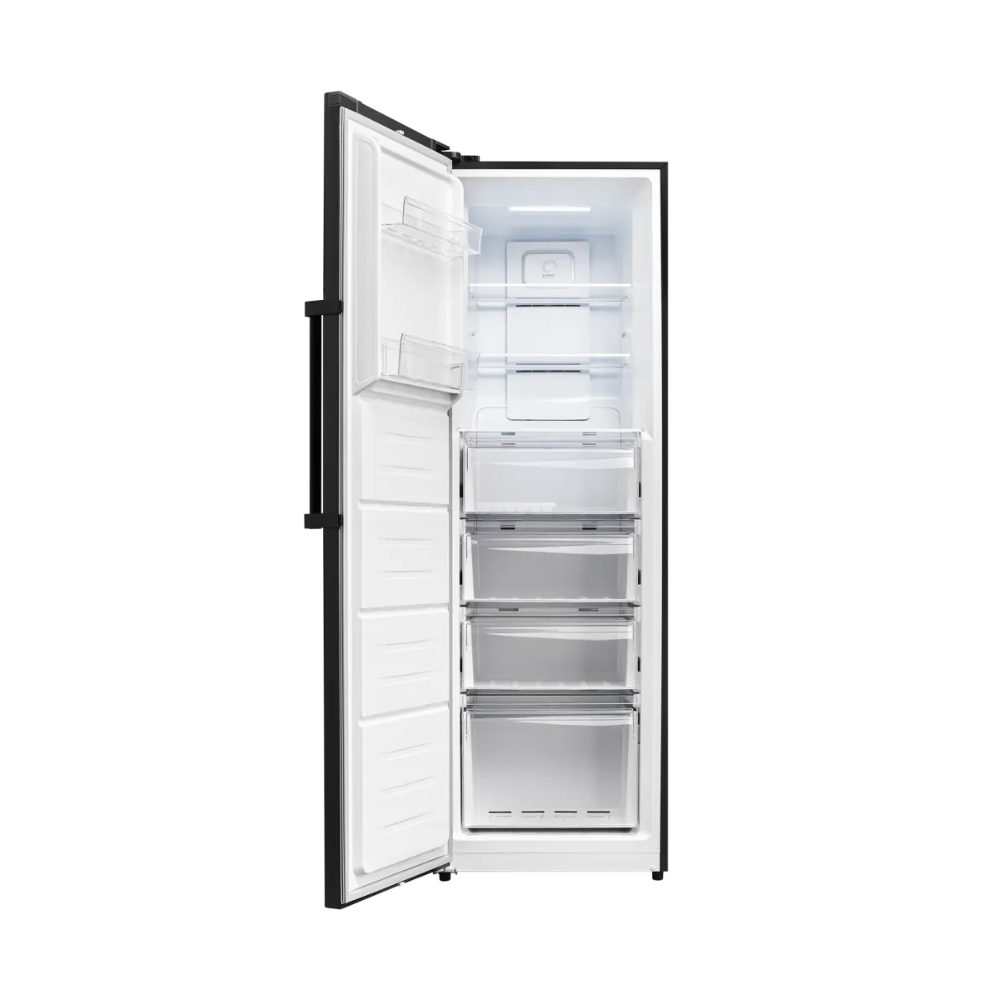 Общий объем морозильной камеры, л - 304; Размеры, мм (ШхГхВ) - 600x650x1850; Мощность замораживания (кг/сут) - 24; Размораживание - No frost; Класс энергопотребления - A+; Макс. уровень шума, дБ - 40; Климатический класс - SN-T +10°C / +43°C; Открывание дверей - Перевешиваемые двери; Тип - Морозильная камера; Цвет - Черный; Количество компрессоров - 1; Системы защиты - Блокировка от детей; Индикат