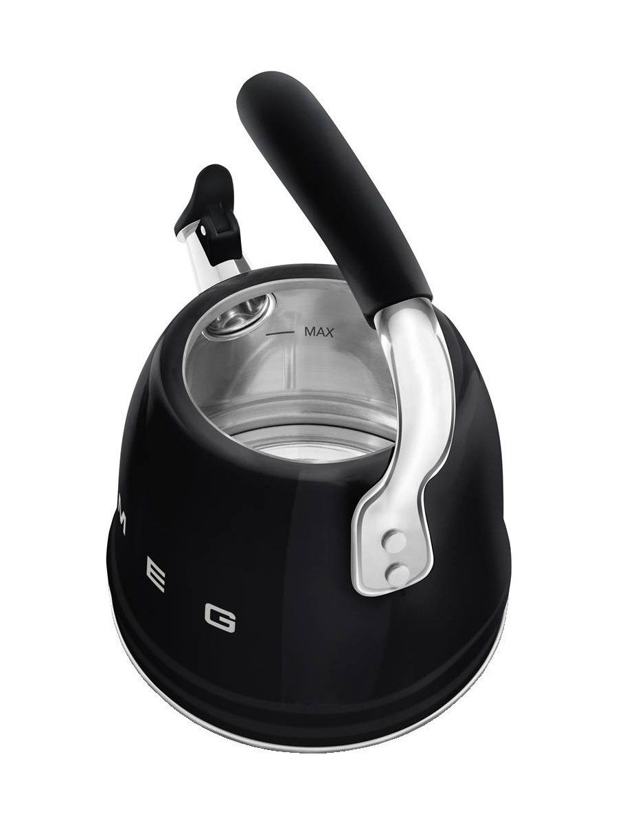 Тип - Чайник; Объем, л - 2.3; Материал - Нержавеющая сталь; Особенности посуды - Со свистком; Вес товара, г - 2000; Цвет - Чёрный; Вид выпуска товара - Фабричное производство; Количество в комплекте, шт. - 1; Совместимые плиты - Для газовых плит,Для индукционных плит,Для электрических плит;
