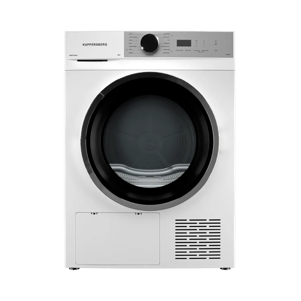 Загрузка белья для сушки, кг - 8; Количество программ сушки - 15; Тип сушки - С тепловым насосом; Управление - Электронное; Системы защиты - Блокировка от детей; Тип - Сушильная машина; Цвет - Белый; Особенности конструкции - Тепловой насос; Инверторный двигатель - Нет; Ширина, см - 59.5; Глубина, см - 59.5; Высота, см - 85; Вес, кг - 42; Гарантийный срок - 3 года;
