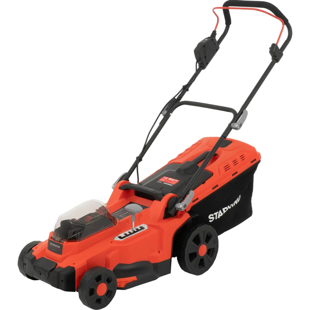 Тип - Газонокосилка; Газонокосилка-робот - Нет; Тип двигателя - Электродвигатель; Режущий элемент триммера - Нож; Тип питания - От аккумулятора; Ширина обработки, см - 37; Макс. емкость аккумулятора, А•ч - 4; Напряжение аккумулятора - 18 В; Способ питания - От аккумулятора; Объем травосборника, л - 35; Самоходность - Нет; Вид садовой техники - Газонокосилка аккумуляторная; Время работы от аккумуля
