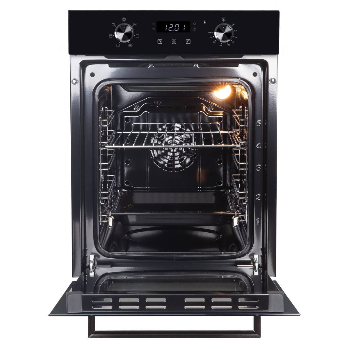 Объем духовки, л - 51; Тип установки - Независимая; Тип питания - Электрический; Количество режимов работы - 6; Внутреннее покрытие - Эмаль; Количество стекол дверцы духовки - 3; Тип - Духовой шкаф; Цвет - Черный,прозрачный; Потребляемая мощность, Вт - 2000; Класс энергоэффективности - A; Макс. температура, °С - 250; Функционал духовки - Гриль,Конвекция; Очистка духовки - Традиционная; Направление