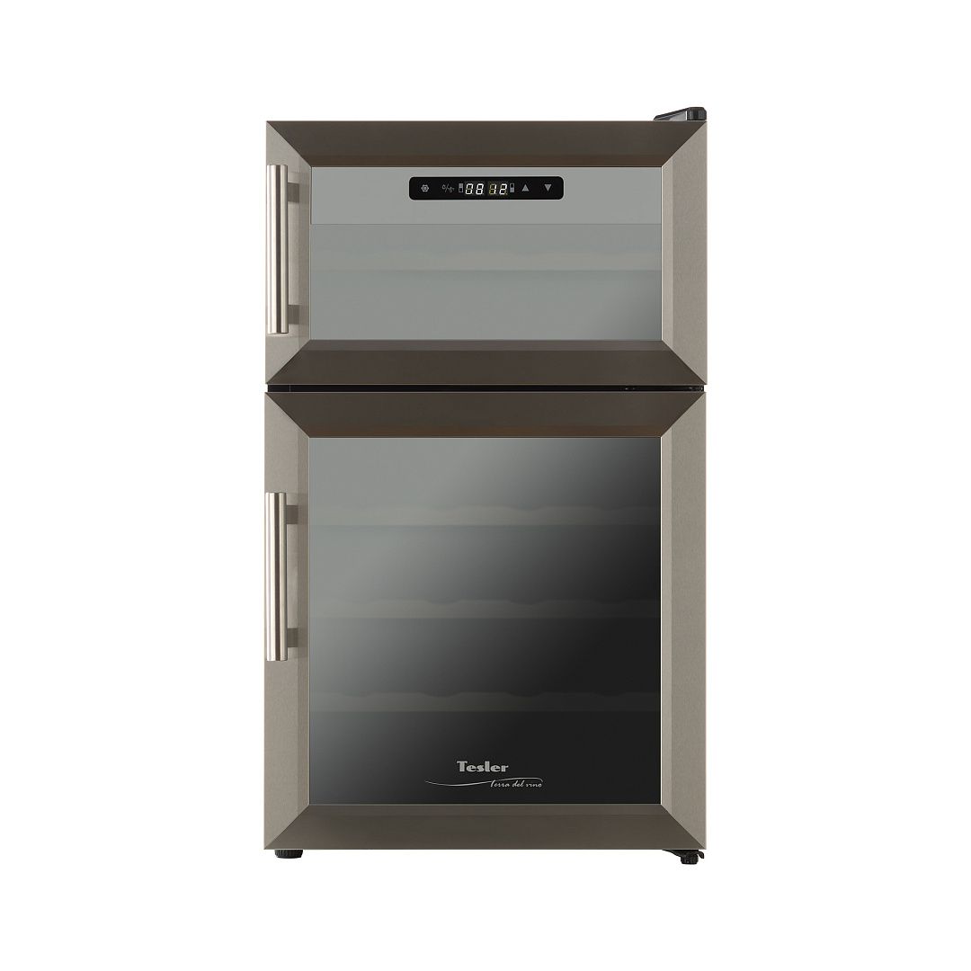 Общий объем, л - 70; Количество бутылок, шт - 24; Размеры, мм (ШхГхВ) - 430*520*740; Класс энергопотребления - C; Автономное сохранение холода, ч - 2; Макс. уровень шума, дБ - 33; Количество камер - 2; Климатический класс - N +16°C / +32°C; Открывание дверей - Влево; Тип - Винный шкаф; Цвет - Черный; Количество температурных зон - 2; Тип охлаждения - Термоэлектрический; Особенности холодильника -