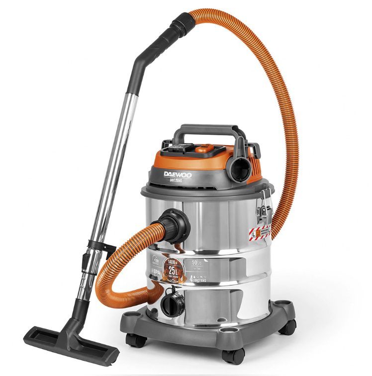 Потребляемая мощность, Вт - 1400; Макс. уровень шума, дБ - 85; Объем пылесборника, л - 25; Диаметр шланга, мм - 32; Длина шланга, м - 3; Вид питания - От сети 220В; Вид фильтра - HEPA; Вид пылесборника - Мешок-пылесборник; Вид насадки пылесоса - Щелевая насадка,Щетка с жесткой щетиной; Тип уборки - Сухая и влажная; Тип трубки - Составная; Материал трубки - Металл; Разрежение, мбар - 210; Количеств
