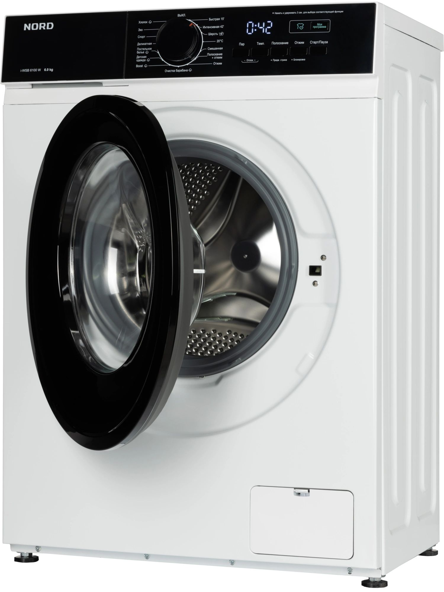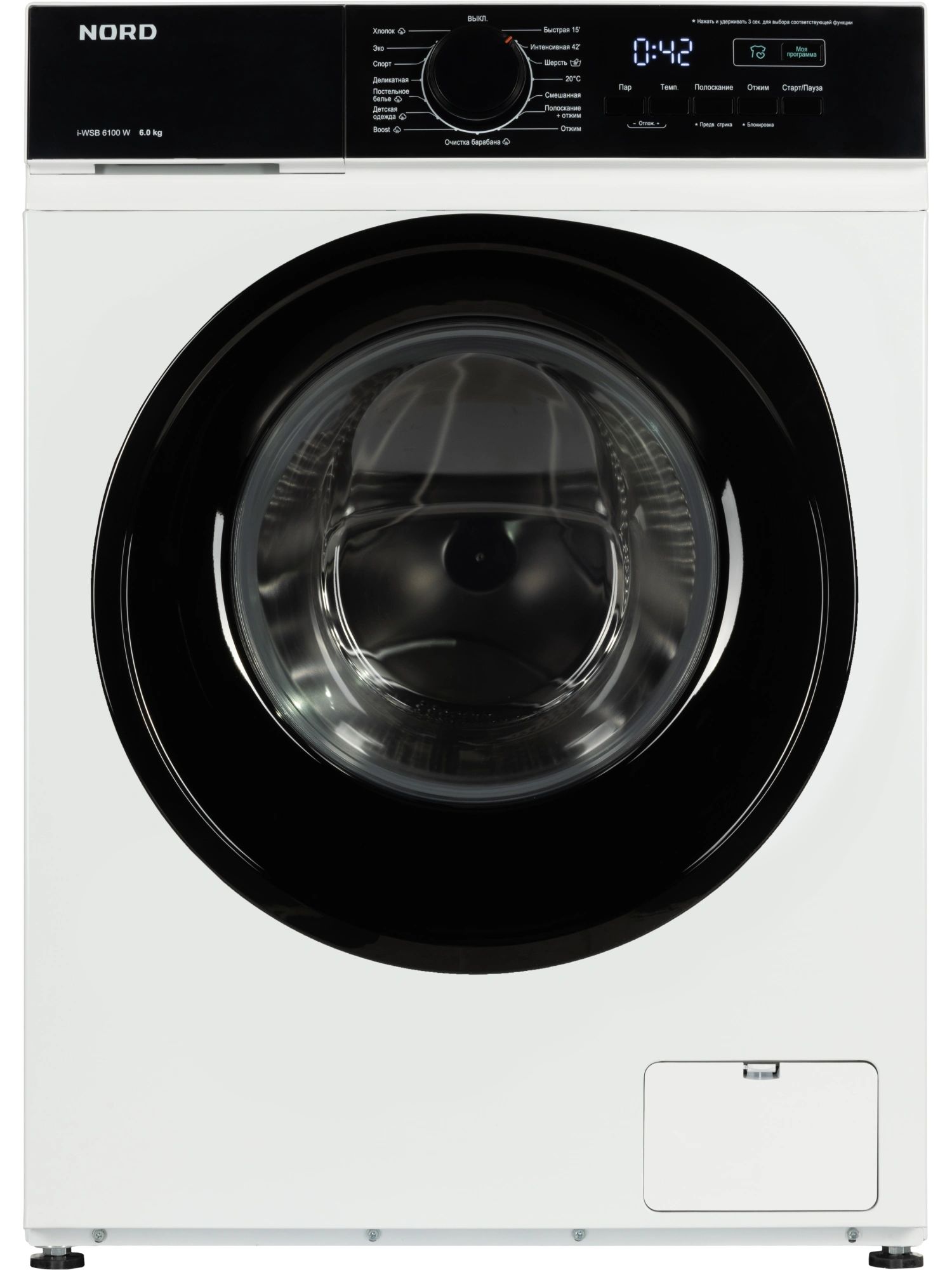 Программы стирки Быстрая стирка,Предварительная стирка,Стирка деликатных тканей,Стирка детской одежды,Стирка изделий из шерсти,Стирка смешанных тканей,Стирка спортивной одежды,Стирка изделий из хлопка,Экономичная стирка,Отжим,Полоскание + отжим,Интенсивная стирка