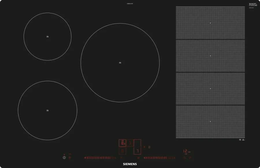 Вид - индукционная; Материал - стеклокерамика; Габариты, см (ВхШхГ) - 5.1 × 79.2 × 51.2 см; Размеры ниши для встраивания (ШхГ) - 78 × 50 см; Мощность подключения - 7400 Вт; Функция ShortBoost - есть; Переключатели - сенсорные; Сенсор жарения fryingSensor Plus - есть; Зона CombiZone для большой посуды по типу жаровень - есть; Зона FlexInduction - есть; Распознавание наличия посуды - есть; Таймер ко