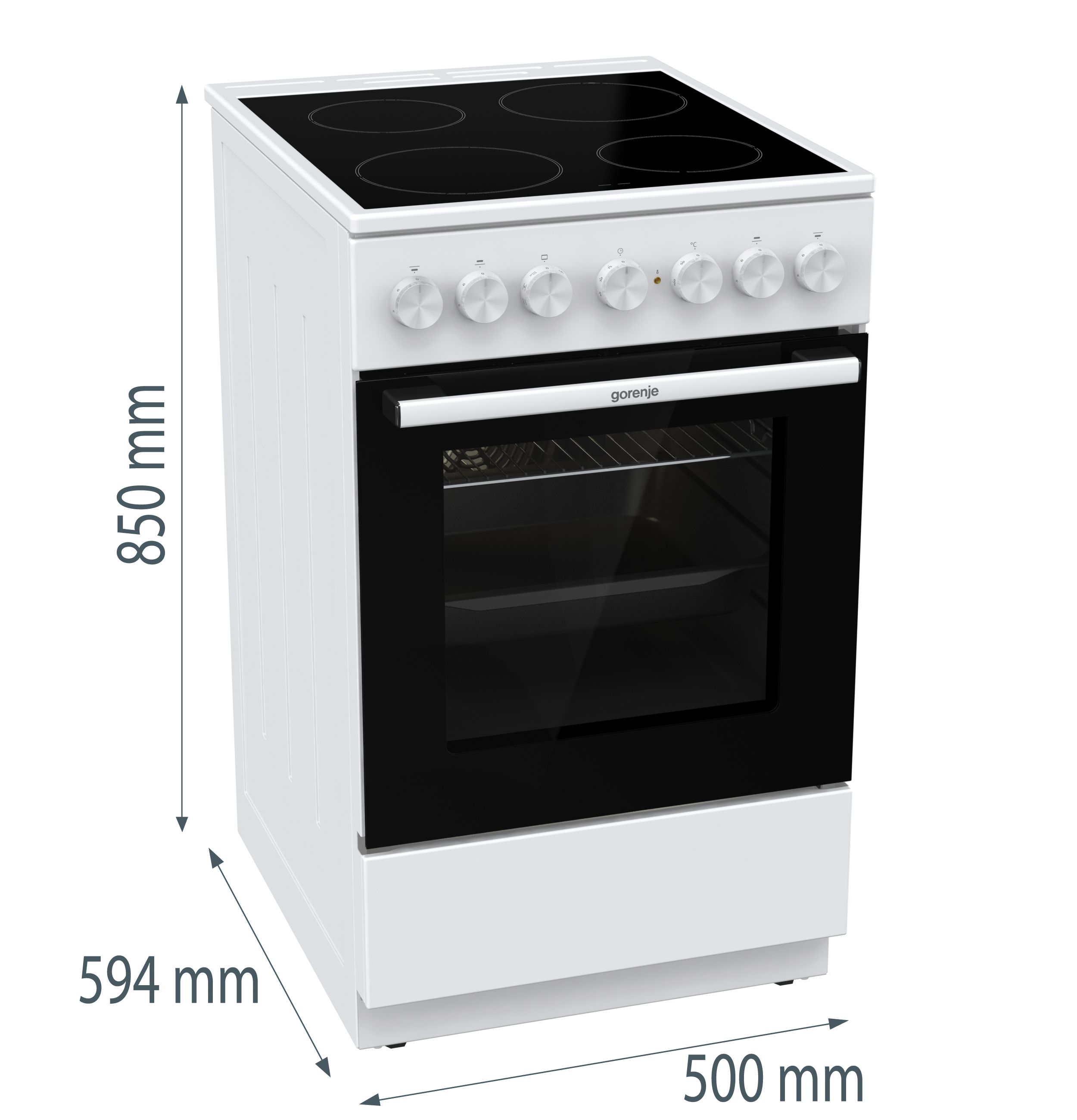 Тип конфорок - Электрические; Тип духовки - Электрический; Ширина плиты, см - 50; Глубина плиты, см - 59.4; Объем духовки, л - 62; Высота, см - 85; Тип управления - Механическое; Системы защиты - Защита от перегрева; Материал рабочей поверхности - Керамика; Тип - Плита; Цвет - Белый; Потребляемая мощность, Вт - 8600; Тип панели (плиты) - Электрическая; Тип гриля - Электрический; Внутреннее покрыти