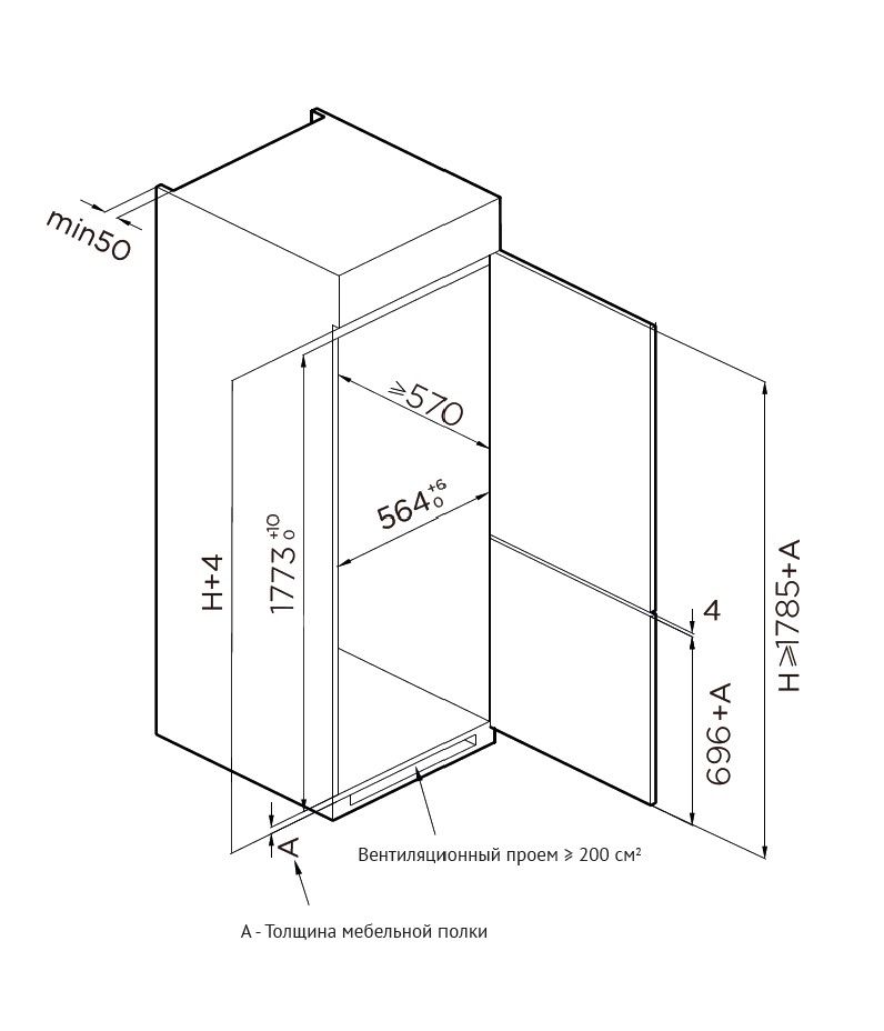 Тип Встраиваемый холодильник
