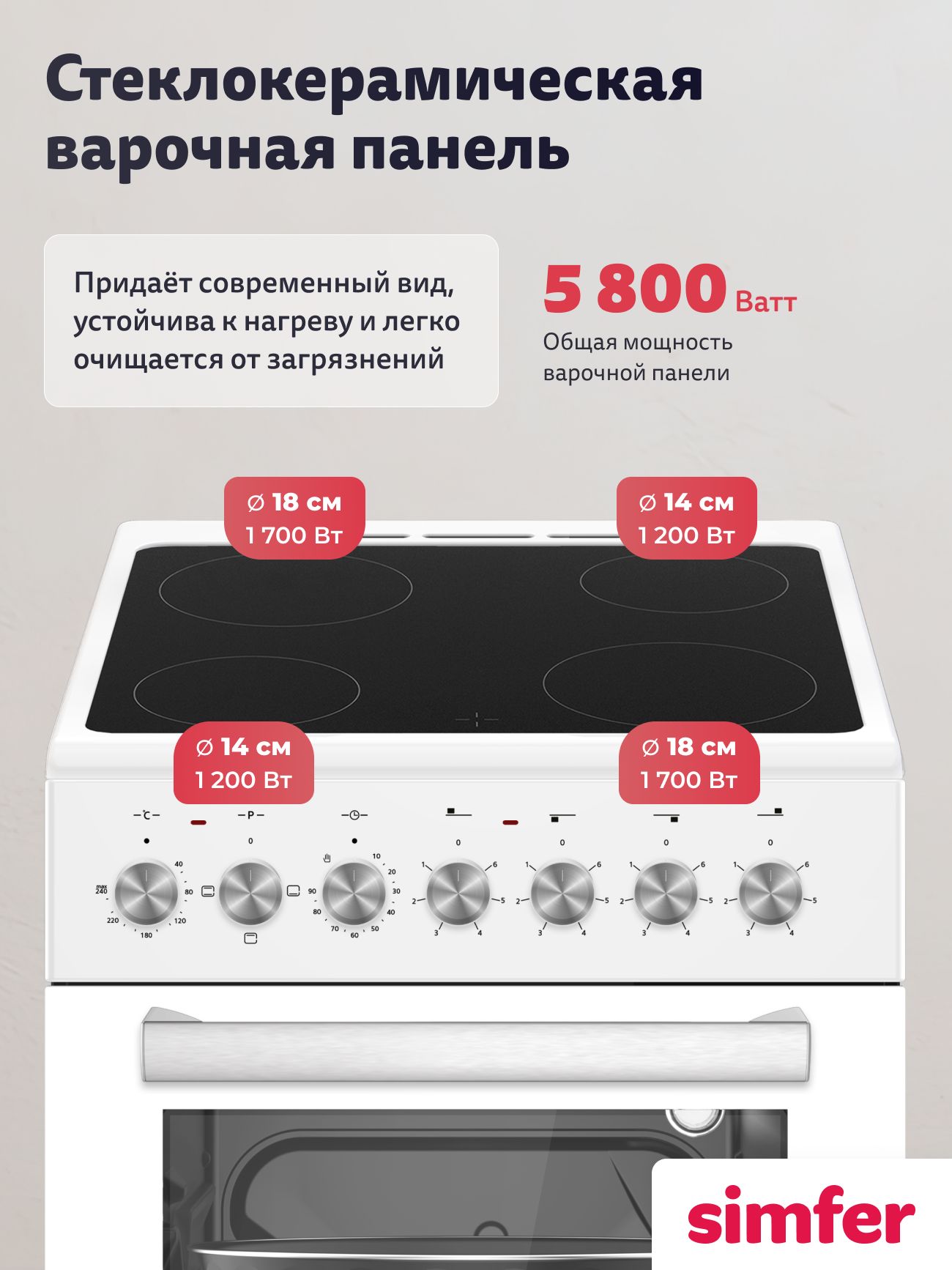 Тип конфорок - Электрические; Тип духовки - Электрический; Ширина плиты, см - 49.8; Глубина плиты, см - 60; Объем духовки, л - 48; Высота, см - 86; Тип управления - Механическое; Системы защиты - Защита от перегрева; Материал рабочей поверхности - Стеклокерамика; Тип - Плита; Цвет - Белый,светло-бежевый; Потребляемая мощность, Вт - 7600; Тип панели (плиты) - Электрическая; Внутреннее покрытие - Эм
