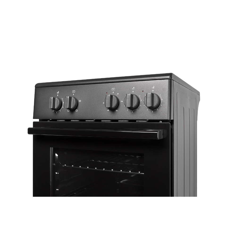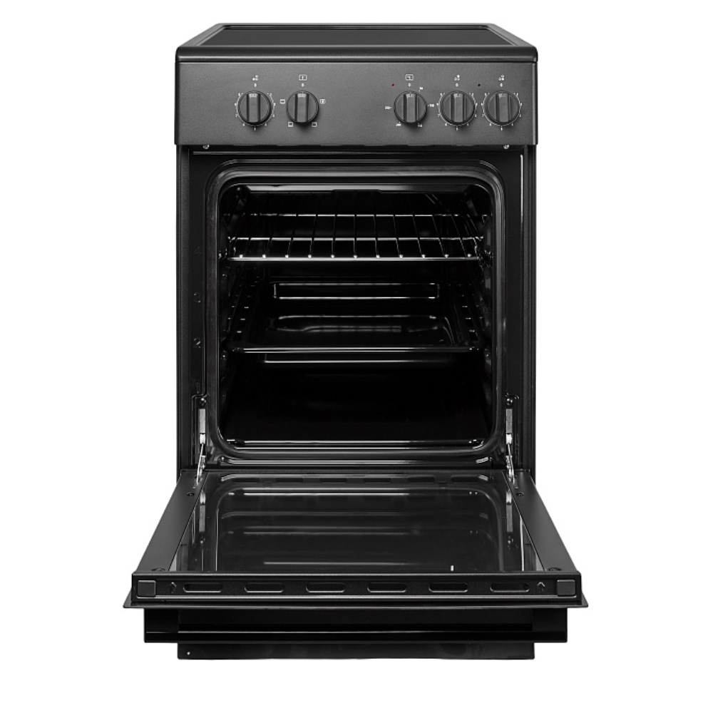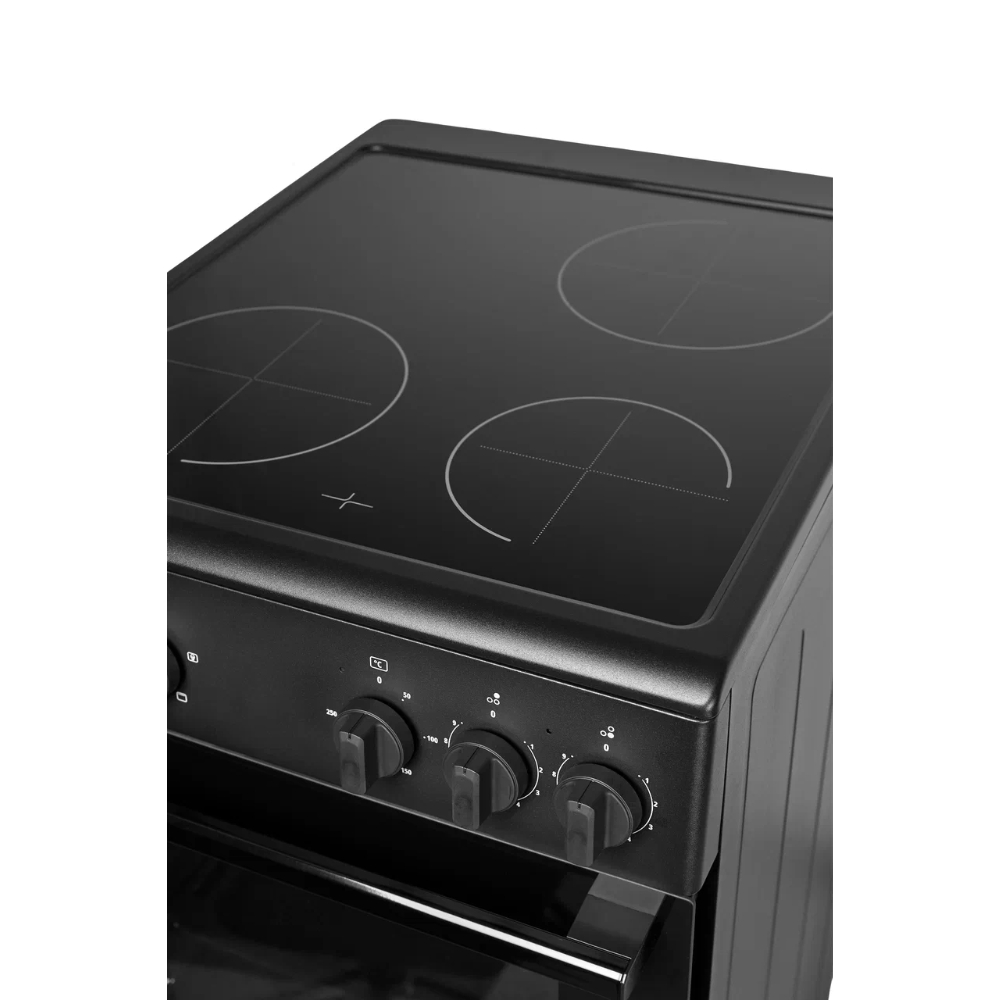 Цвет - Черный; - ; Тип панели (плиты) - электрическая; Тип конфорок - электрические; Материал рабочей поверхности - электрический; Материал рабочей поверхности - cтеклокерамика; Тип управления - механическое; Количество конфорок - 3; Объем духовки, л - 59; Максимальная температура, °C - 250; Количество режимов работы - 3; Дверца духовки - откидная; Количество стекол дверцы духовки - 2; Ящик для п