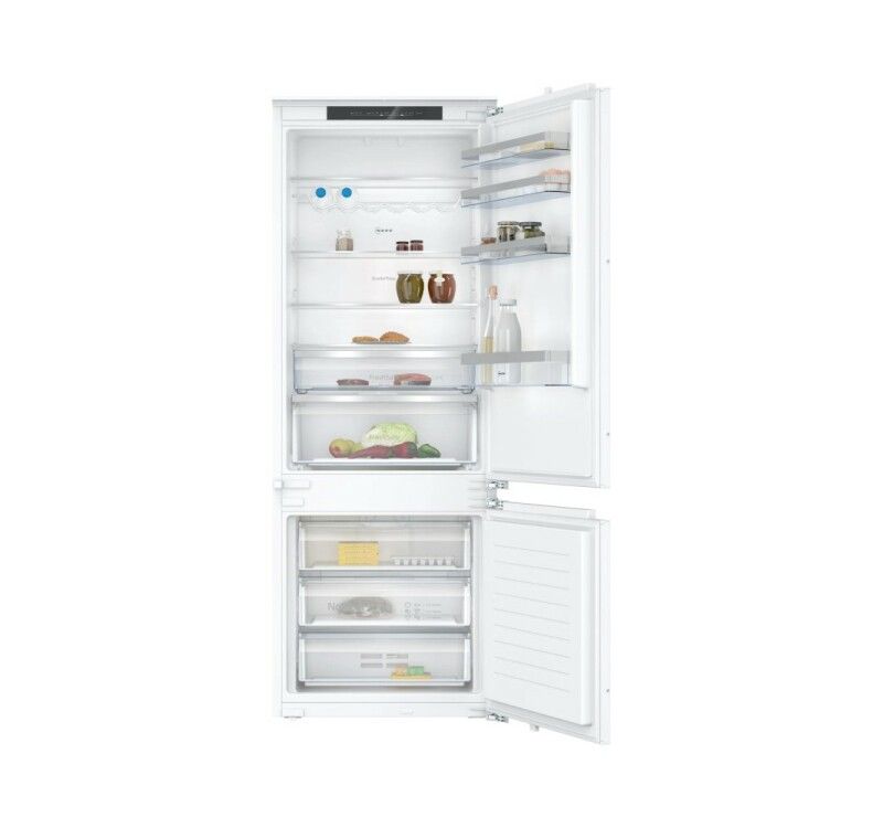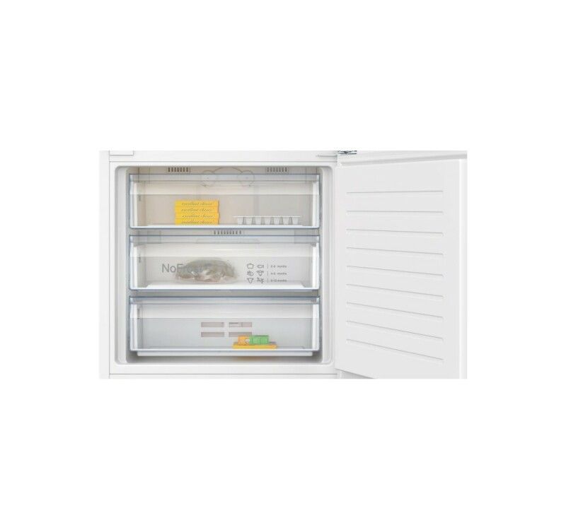 Общий объем, л - 383; Размеры, мм (ШхГхВ) - 708х548х1935; Общий объем холодильной камеры, л - 285; Автономное сохранение холода, ч - 13; Общий объем морозильной камеры, л - 98; Мощность замораживания (кг/сут) - 9.5; Макс. уровень шума, дБ - 34; Количество камер - 2; Климатический класс - SN-ST +10°C / +38°C; Вид компрессора - Инверторный; Зона свежести - Да; Тип - Встраиваемый холодильник; Цвет -