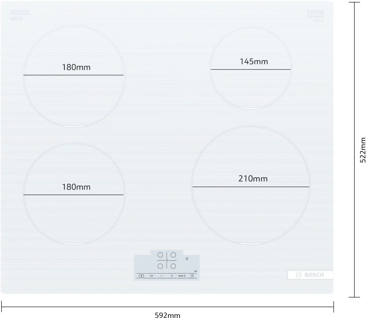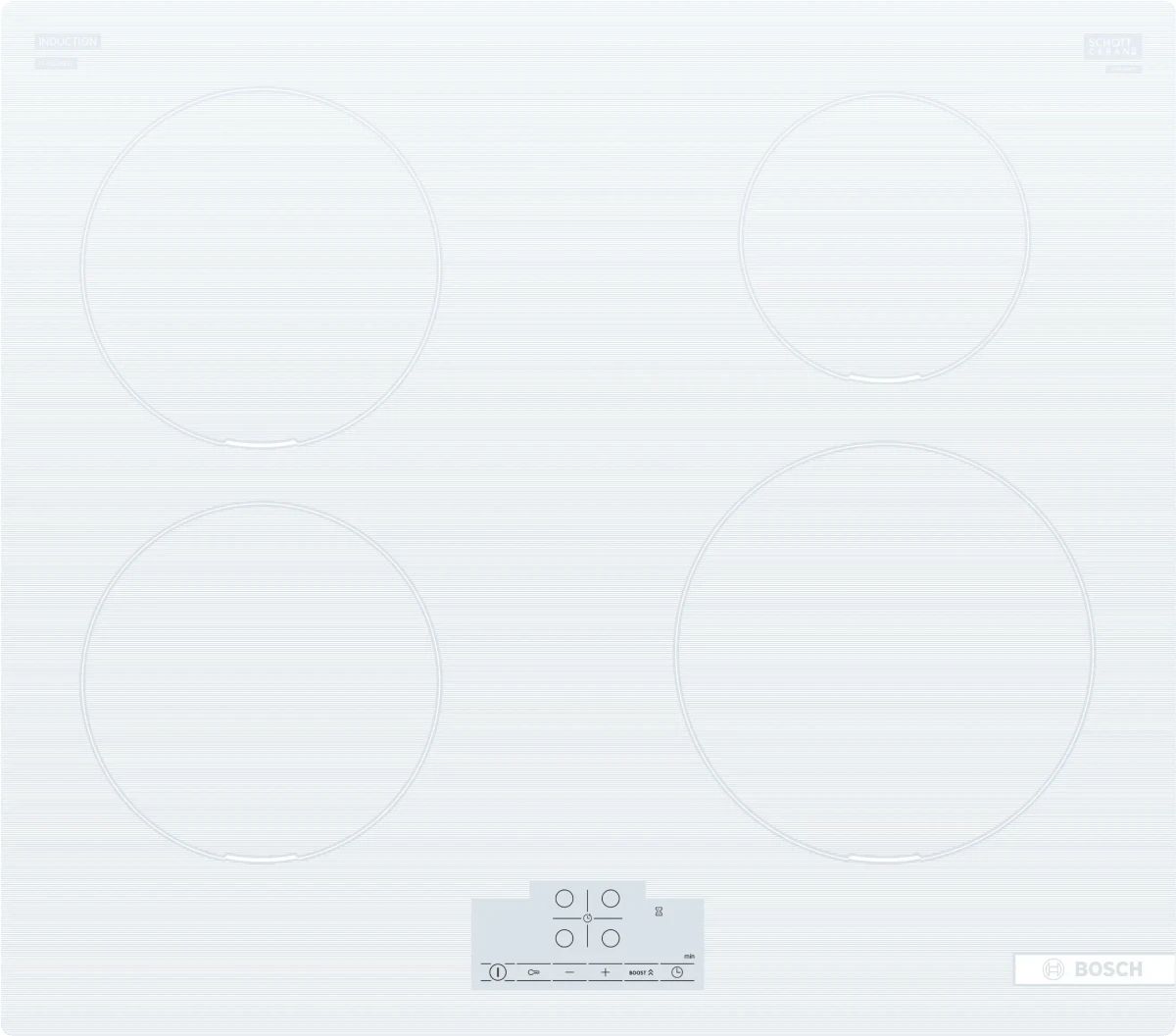 Тип панели (плиты) - Индукционная; Количество конфорок - 4; Материал рабочей поверхности панели - Стеклокерамика; Конструкция панели - Независимая; Тип управления - Сенсорное; Тип - Варочная панель; Цвет - Белый; Мощность варочной панели, Вт - 4600; Ширина, см - 59.2; Ширина встраивания, см - 56; Глубина встраивания, см - 49; Размеры, мм - 522x592x51; Вес товара, г - 10200; Гарантийный срок - 12;