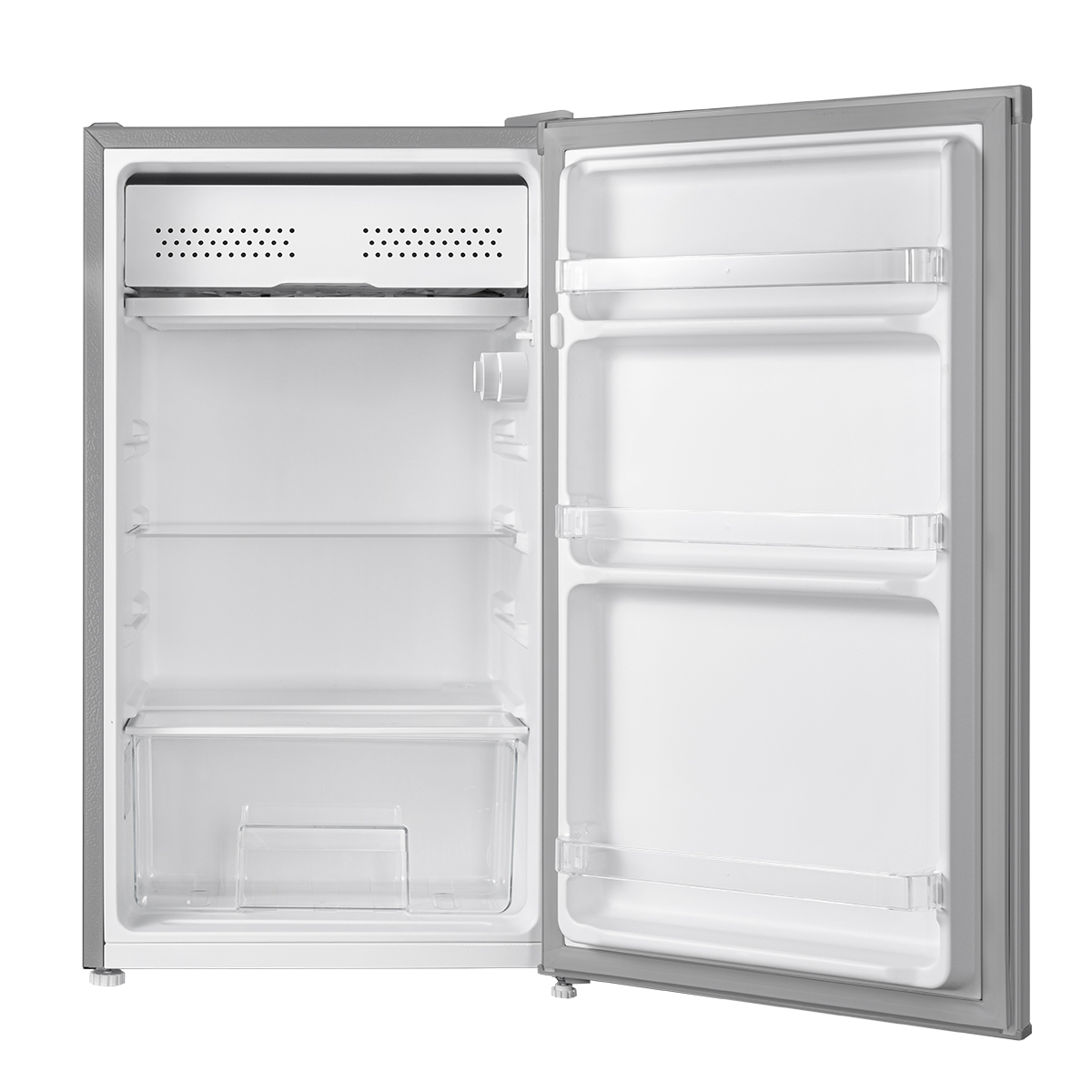 Общий объем, л - 92; Размеры, мм (ШхГхВ) - 474х447х831; Общий объем холодильной камеры, л - 92; Класс энергопотребления - A+; Макс. уровень шума, дБ - 41; Количество камер - 1; Открывание дверей - Перевешиваемые двери; Тип - Холодильник; Цвет - Серебристый; Вид холодильника - С морозильной камерой; Хладагент - R600A; Тип управления - Механическое; Количество дверей - 1; Количество полок - 2; Колич