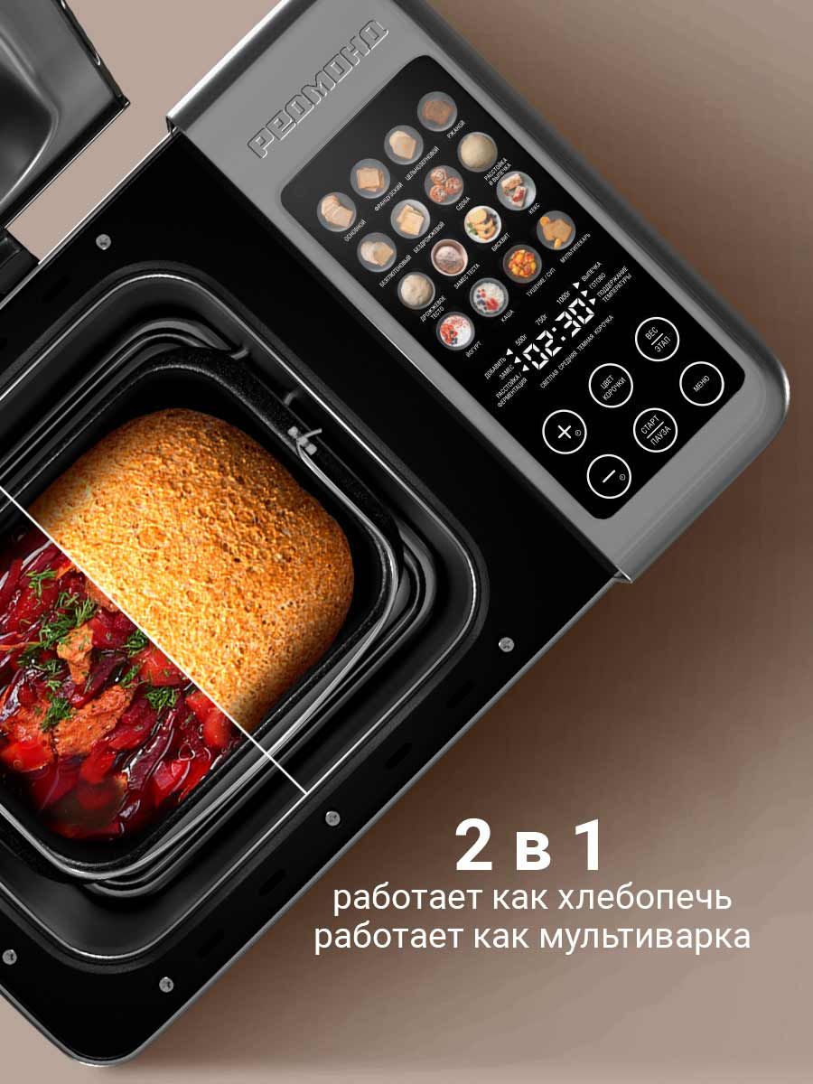 Программы приготовления - Йогурт,Отложенный старт,Тушение,Каша,Суп; Мощность, Вт - 550; Основной материал корпуса - Металл; Внутреннее покрытие чаши - Антипригарное; Тип управления - Сенсорное; Автоматических программ - 15; Тип - Хлебопечка; Цвет - Серый металлик,серебристый; Объем чаши, л - 2.7; Длина шнура, м - 1.2; Размеры, мм - 350 × 297 × 268; Вес товара, г - 5400; Гарантийный срок - 12 месяц