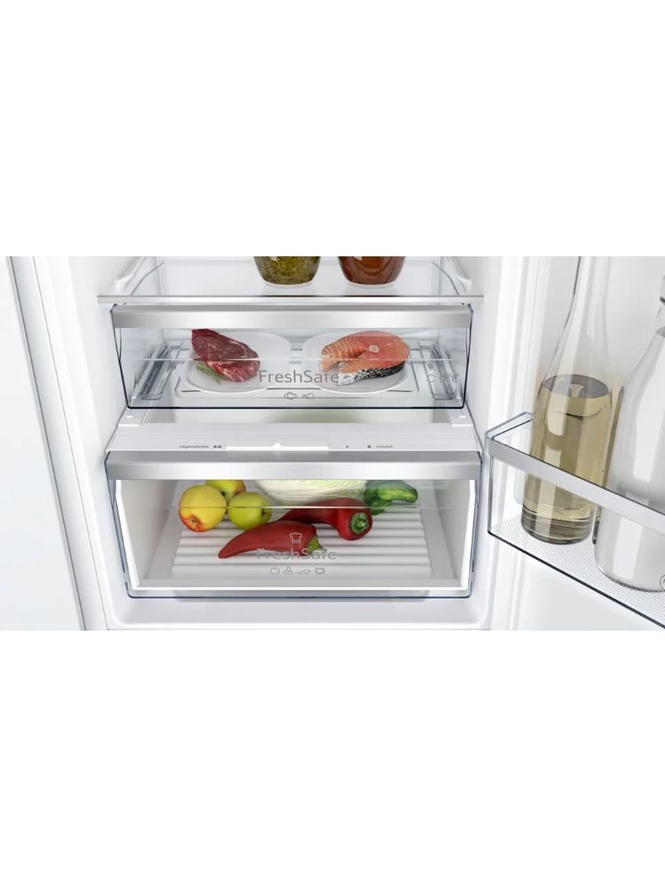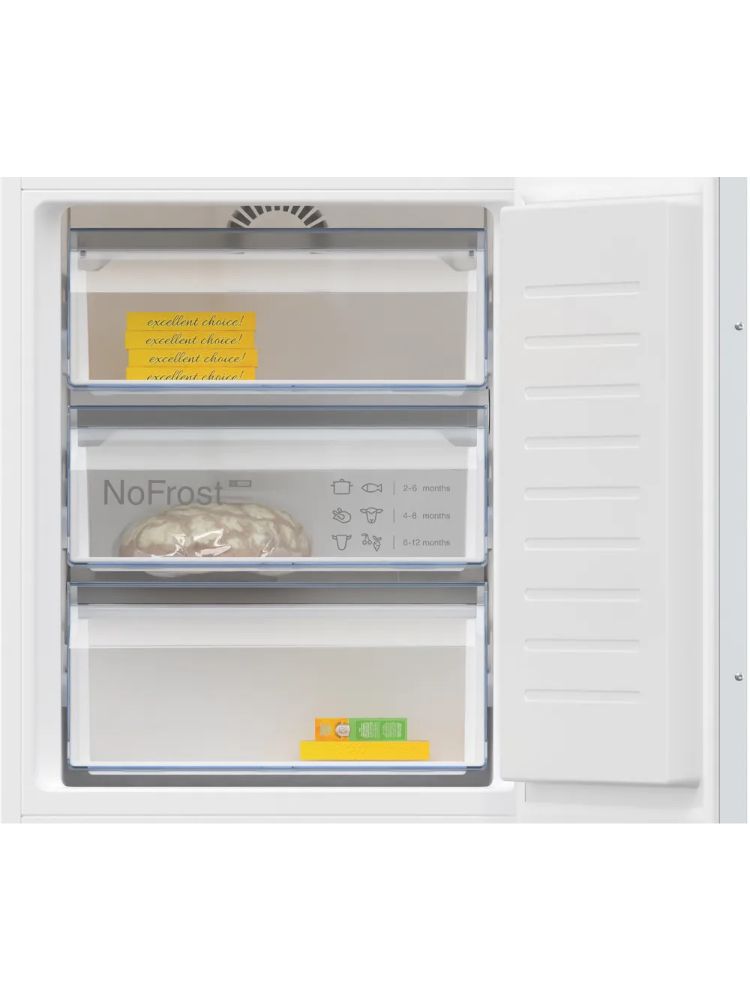 Общий объем, л - 260; Размеры, мм (ШхГхВ) - 541х548х1772; Размораживание - No frost; Общий объем холодильной камеры, л - 184; Класс энергопотребления - E; Автономное сохранение холода, ч - 10; Общий объем морозильной камеры, л - 76; Мощность замораживания (кг/сут) - 4; Макс. уровень шума, дБ - 35; Количество камер - 2; Открывание дверей - Перевешиваемые двери; Зона свежести - Да; Тип - Встраиваемы