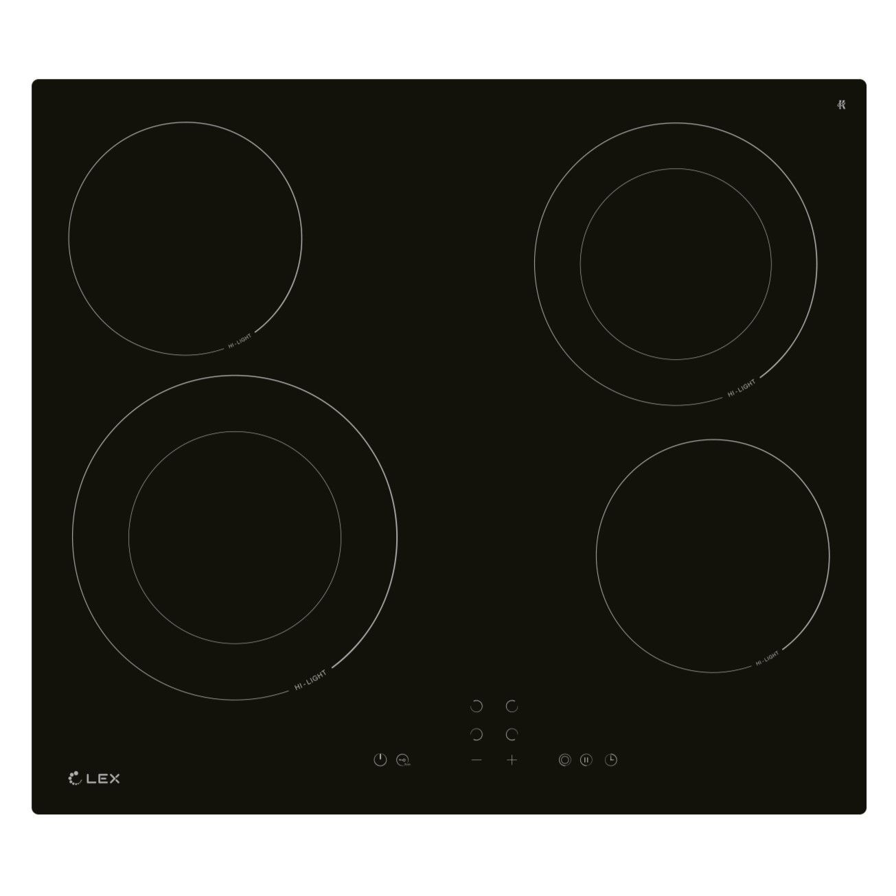 Тип панели (плиты) - Электрическая; Количество конфорок - 4; Материал рабочей поверхности панели - Стеклокерамика; Конструкция панели - Независимая; Индикация - Остаточное тепло; Тип управления - Сенсорное; Тип - Варочная панель; Цвет - Черный,прозрачный; Мощность варочной панели, Вт - 6400; Ширина, см - 59; Глубина, см - 52; Размеры ниши для встраивания панели, мм - 560×490 ; Ширина встраивания,